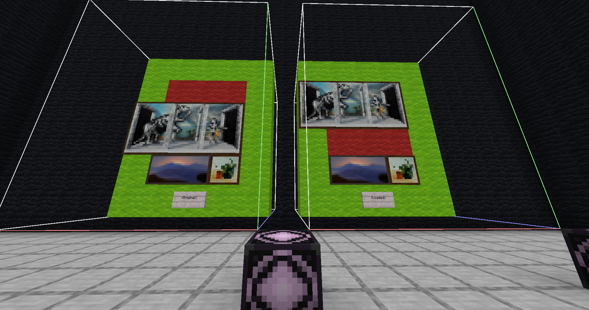 Then, load the saved structure, and again don’t forget to include entities in the structure block.
