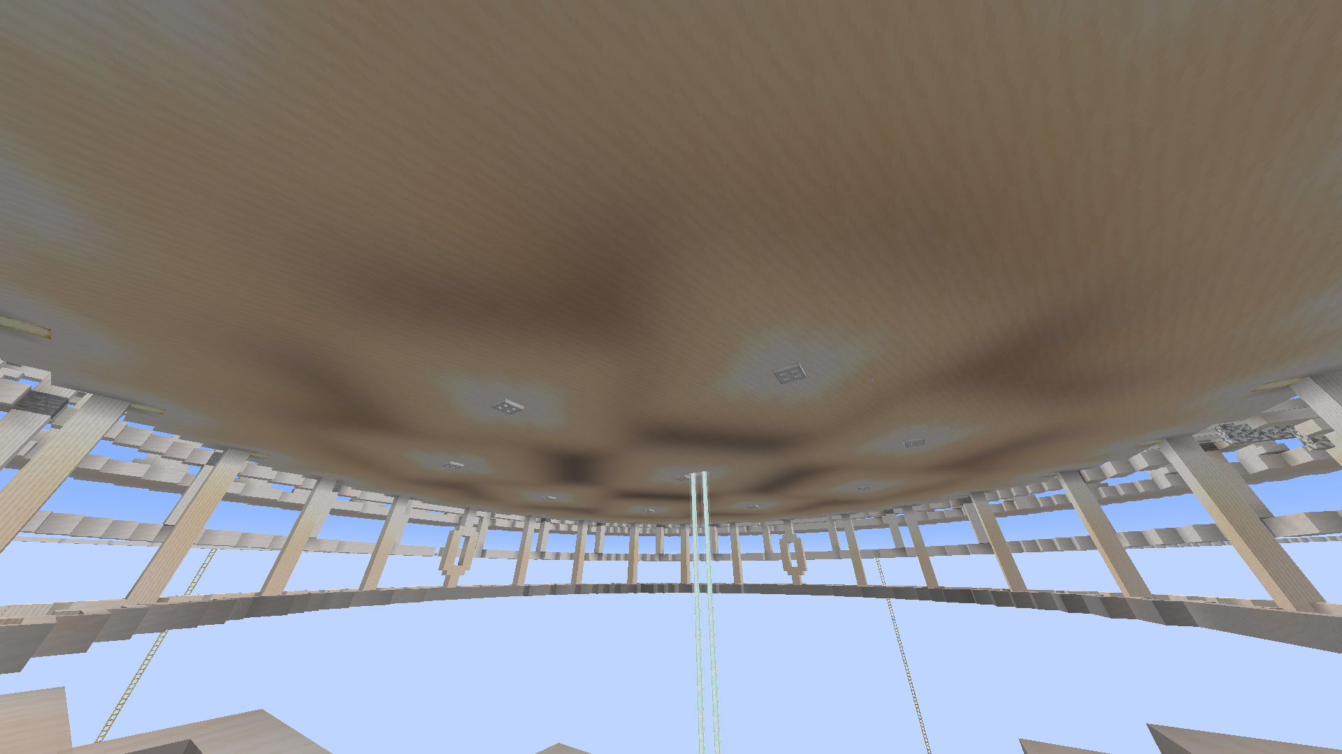 Similarly, put light sources under a white surface to recreate the first image (There are lanterns above the trapdoors). This yellow pattern persists during the entire day until the evening.