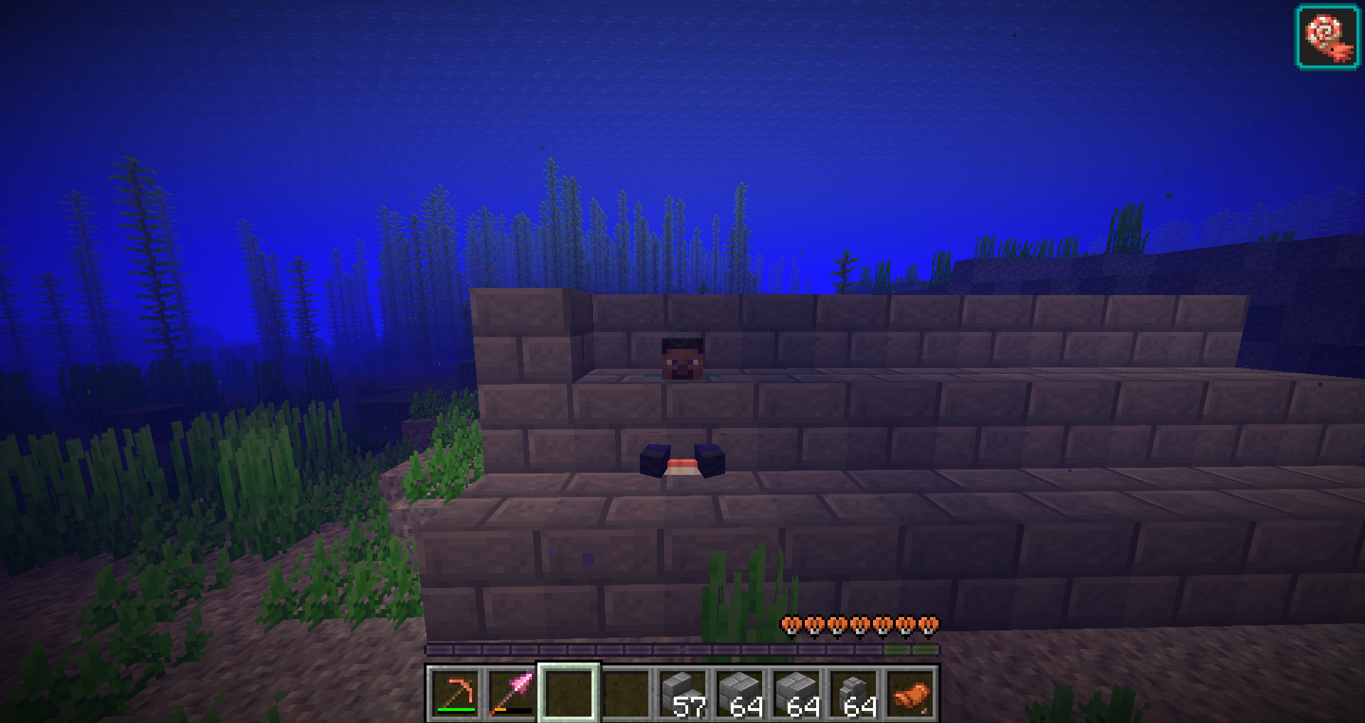basically when you areridng the nautilus, the player hitbox has no collision, so the player pass throught full blocks until the nautilus hitbox collide with the block
