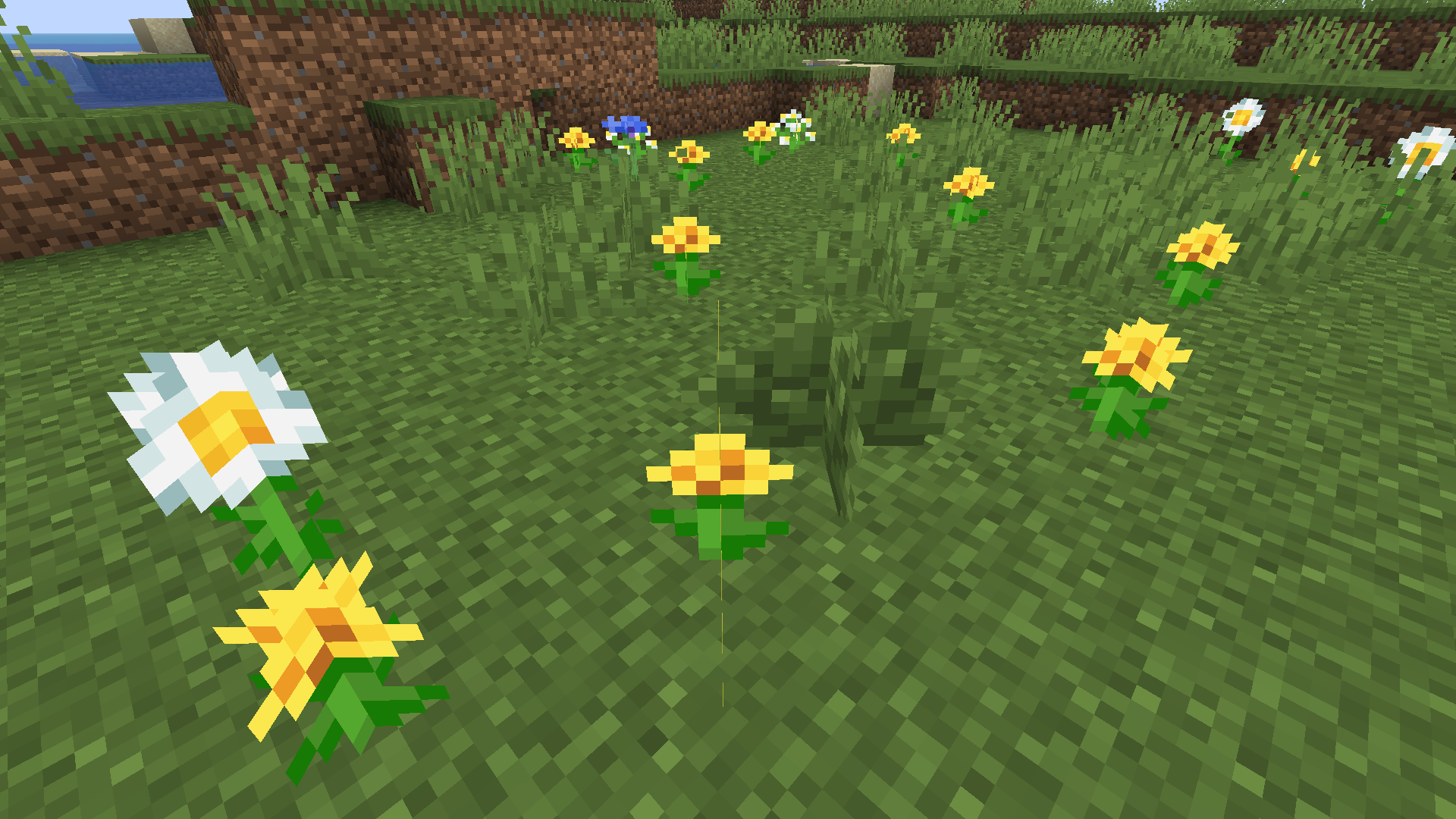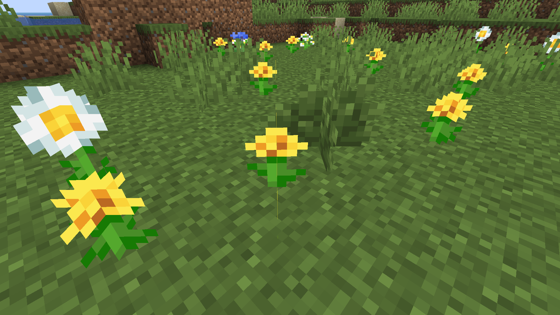 If you view a block such as a flower with a very sharp angle of incidence, the texture can appear to extend considerably beyond where it normally is as a result of the new mipmapping rules. See attached screenshots.