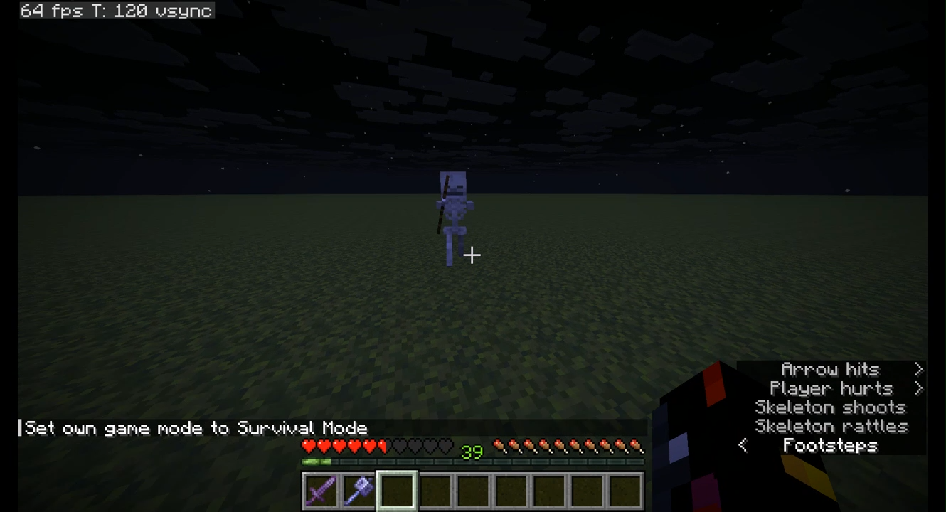 Skeletons holding a bow show a melee hand animation right before shooting when near the skeleton, where both arms do not meet at the bow, and only one seems to.