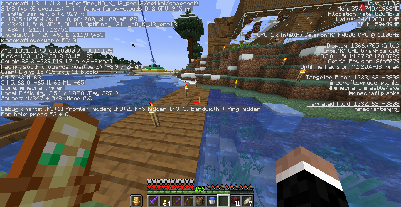 Up until 1.21.1, local difficulty/ in-game days showed up in the f3 menu, but from 1.21.2 onwards they don’t show up, in 1.21.9/1.21.10 they don’t show up even when the option is set to always in the f3 + f6 menu, however, this doesn’t happen in singleplayer, this can be replicated by creating a server and opening the f3 menu in the mentioned versions.