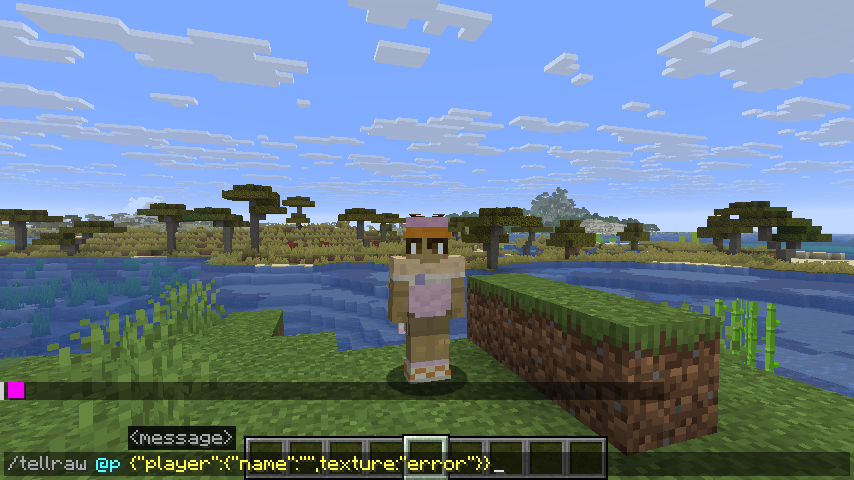 /tellraw @p {"player":{"name":"",texture:"error"}}