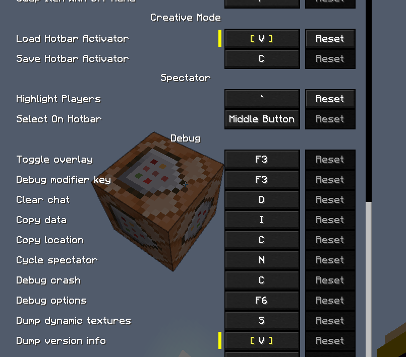 Thus, only defining V for load hotbar, by default shouldn’t clash and create a conflict.