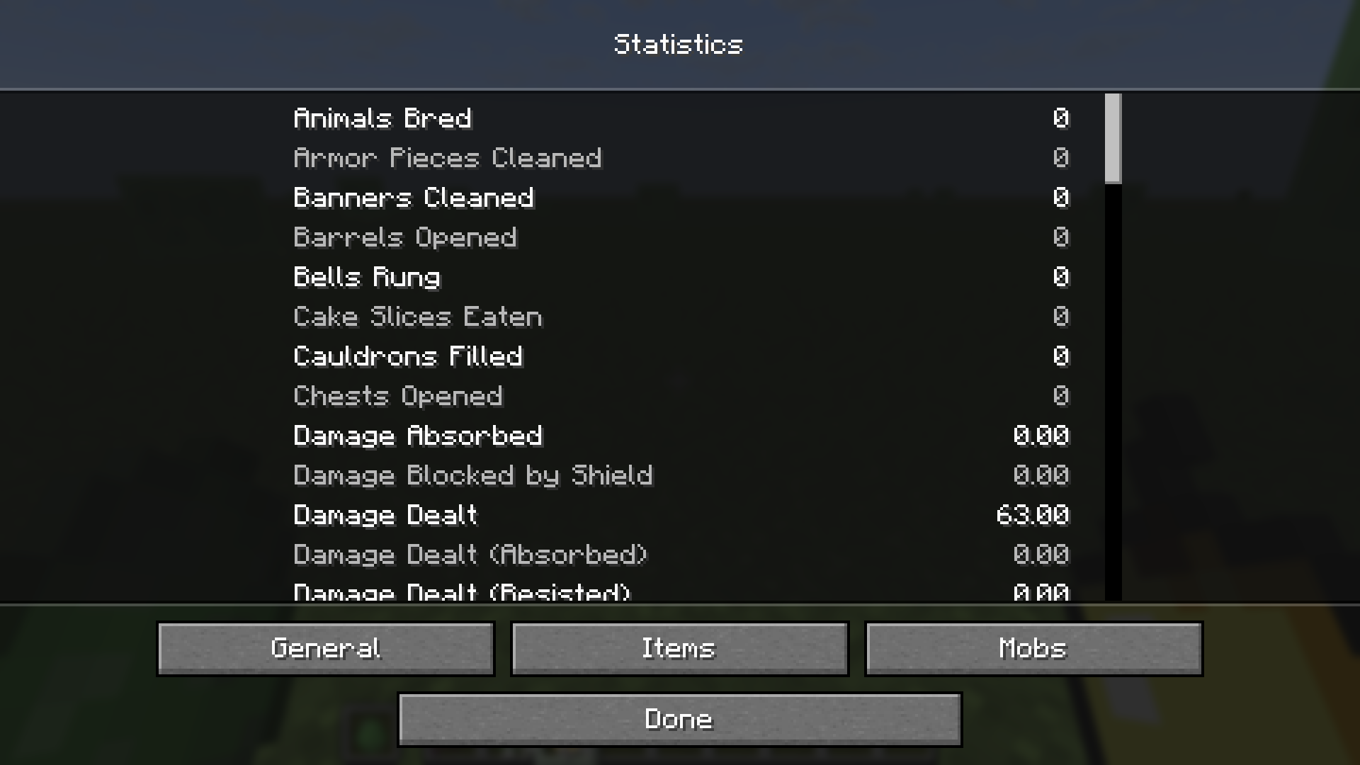 1.21.9 introduced a new statistics screen that looks like the “create new world” screen. The problem with this new screen is that it uses several incorrect textures when using a custom resource pack, or the built-in Programmer Art pack. It is inconsistent with the other options screens.