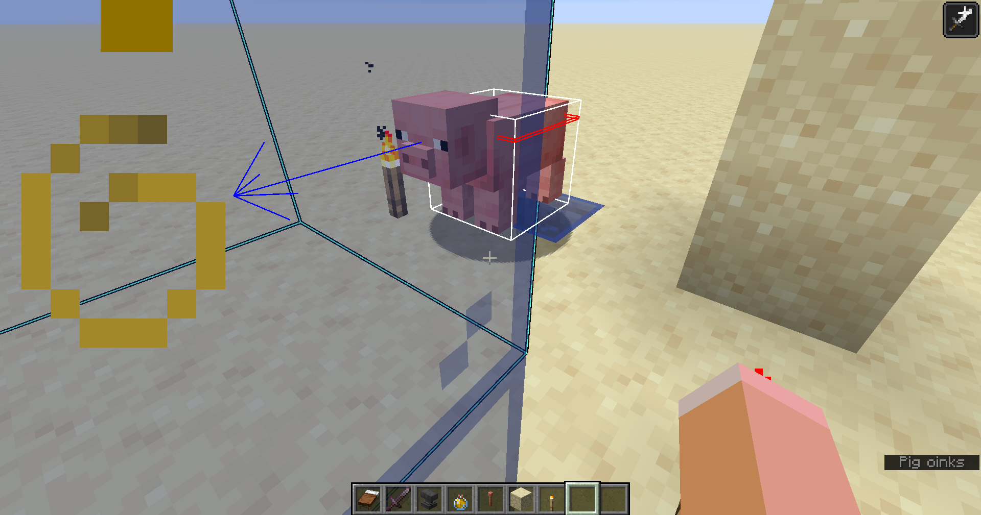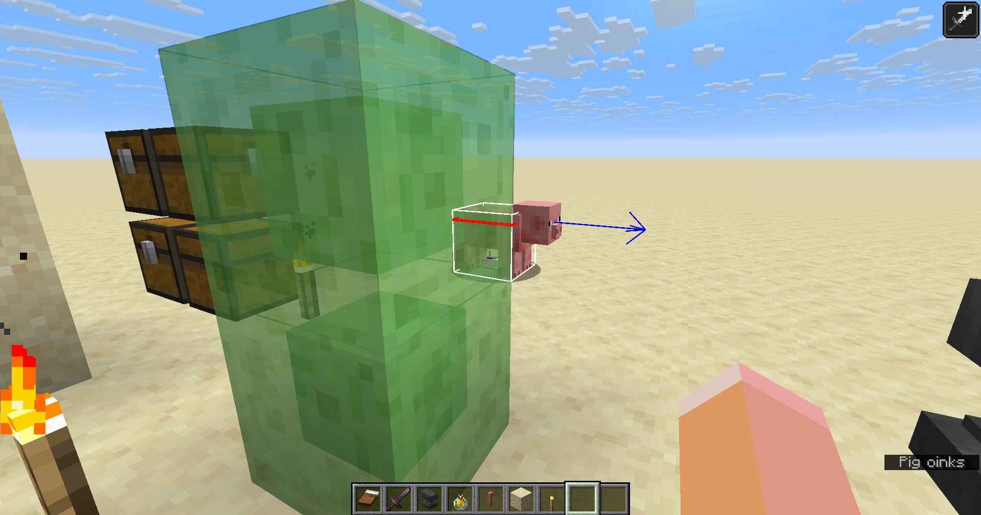 Block hitboxes, particles, semi-transparent blocks and non-block items render behind entity hitboxes with Fabulous graphics. Does not occur in 1.21.10.