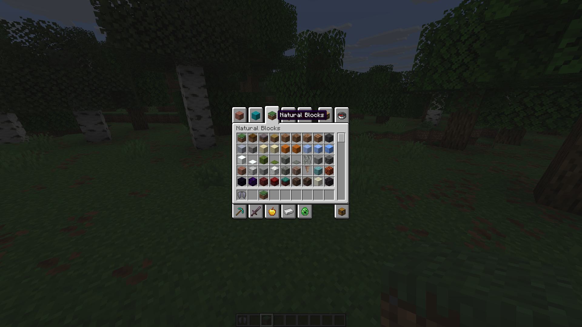when you set the GUI scale to 2 and open inventory in creative mode, grass block will look like this: