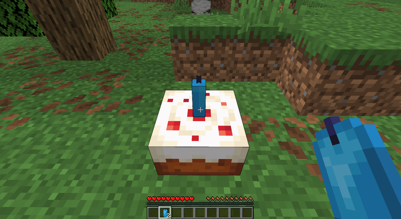 In survival mode, a candle on top of the cake stays in place, but if I go back one block and click to place another candle on the cake, the candle appears in front of me instead of refusing to place the candle. If I crouch on a high block, it happens, but it only places a candle if I am aiming at the candle and not the cake. It even happens on the side of the candle, with it lit and even on top of the cake.