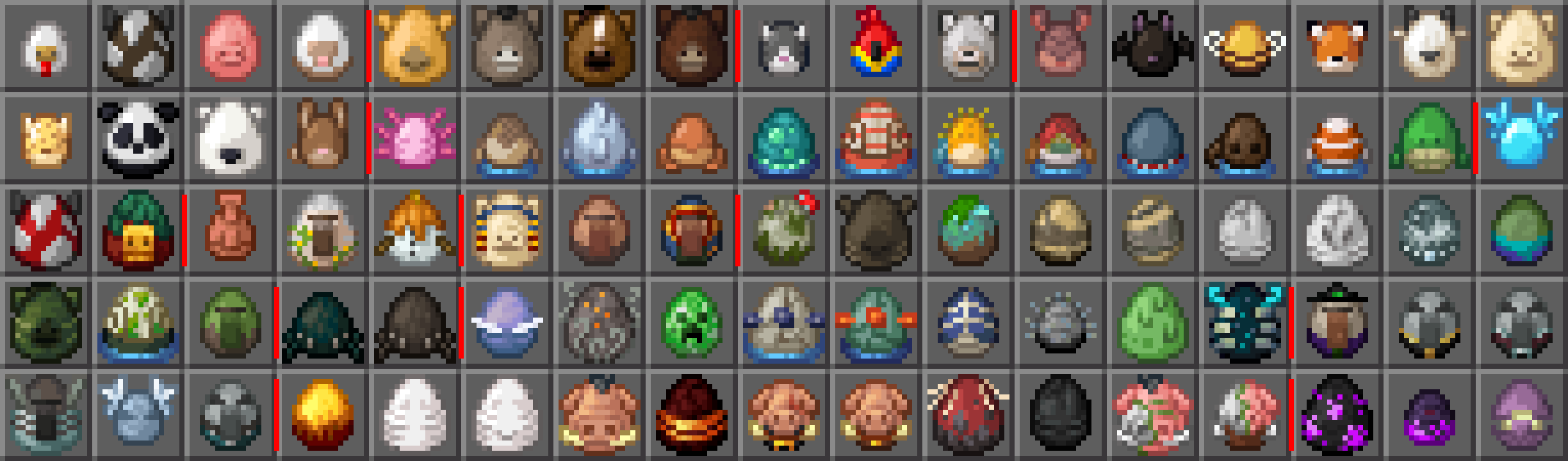 In latest snaphot and preview spawn eggs are sorted thematically, according to the following categories: