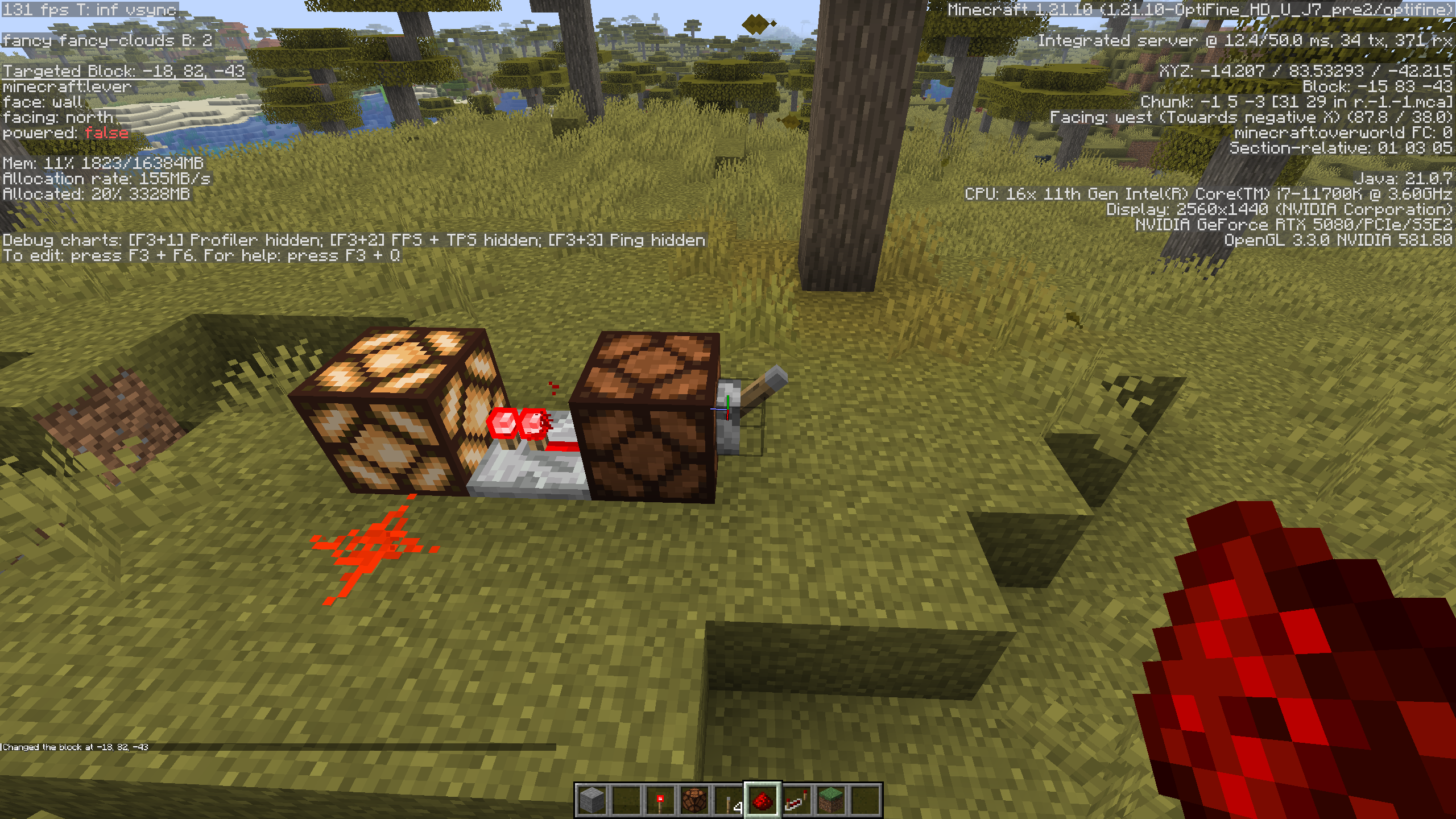 When checking to see if a Minecraft Map would continue to function after updating it to 1.21.10 we discovered a bug with redstone repeaters that was not previously present in Minecraft. This is an abnormal situation that can only be accomplished using commands and would not happen in survival Minecraft likely but nevertheless it is present. I have created a video demonstration that better outlines the issue as it is difficult to explain without it. Essentially when a powered lever is artificially removed from a powered block and replaced with an unpowered lever (using a command such as /clone or /setblock) the repeater remains in a powered state despite there being no powered block behind it. This appears to only occur when the repeater is directly powering a block with redstone dust adjacent to it in any direction. The demo only video was taken in single player vanilla Minecraft.
