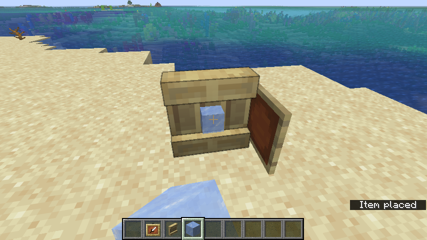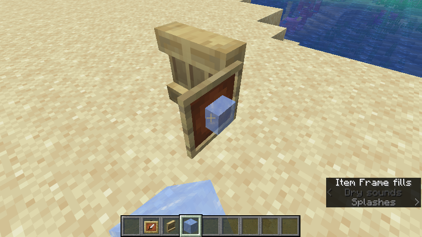 Item frames and shelves are both objects in the world in which an item can be placed for display purposes. Despite the placement action being effectively identical, the subtitle produced differs: shelves say “Item placed”, whereas item frames use “Item Frame fills”.
