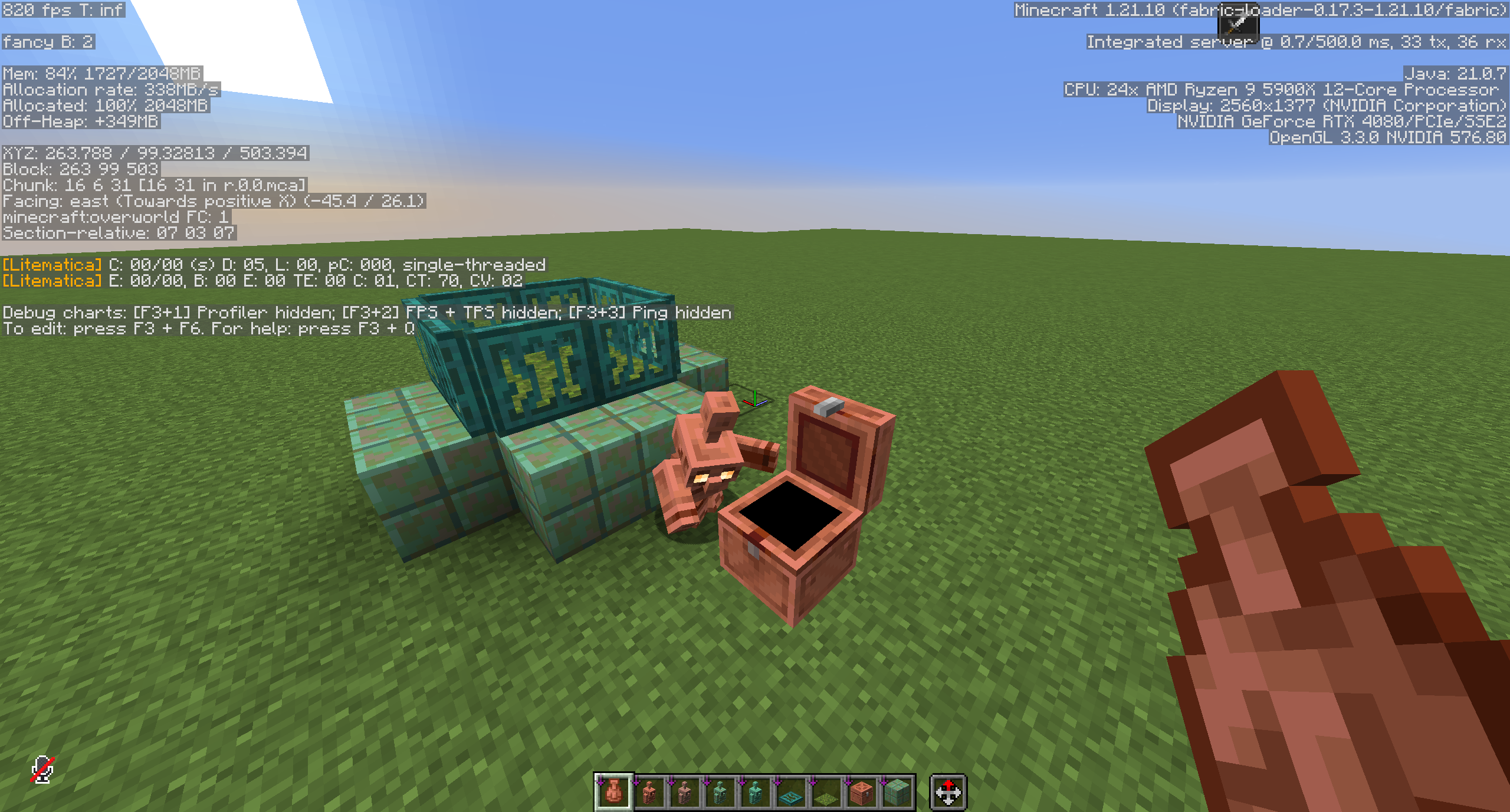 A world which had previously been opened with a modified client might be corrupted. Please try reproducing the issue in a newly generated world.