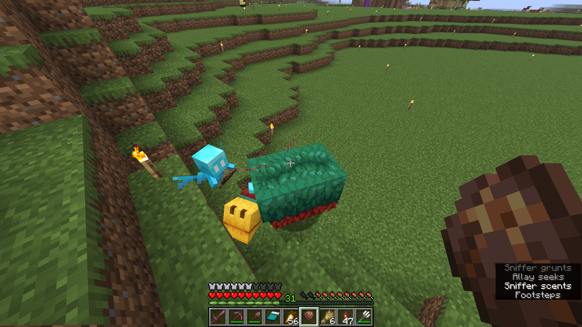 I noticed the Horse detached and looked over at the Sniffer and saw this. (Approximately 4 chunks from where I took the screenshot, but it obviously could’ve occured at any time)