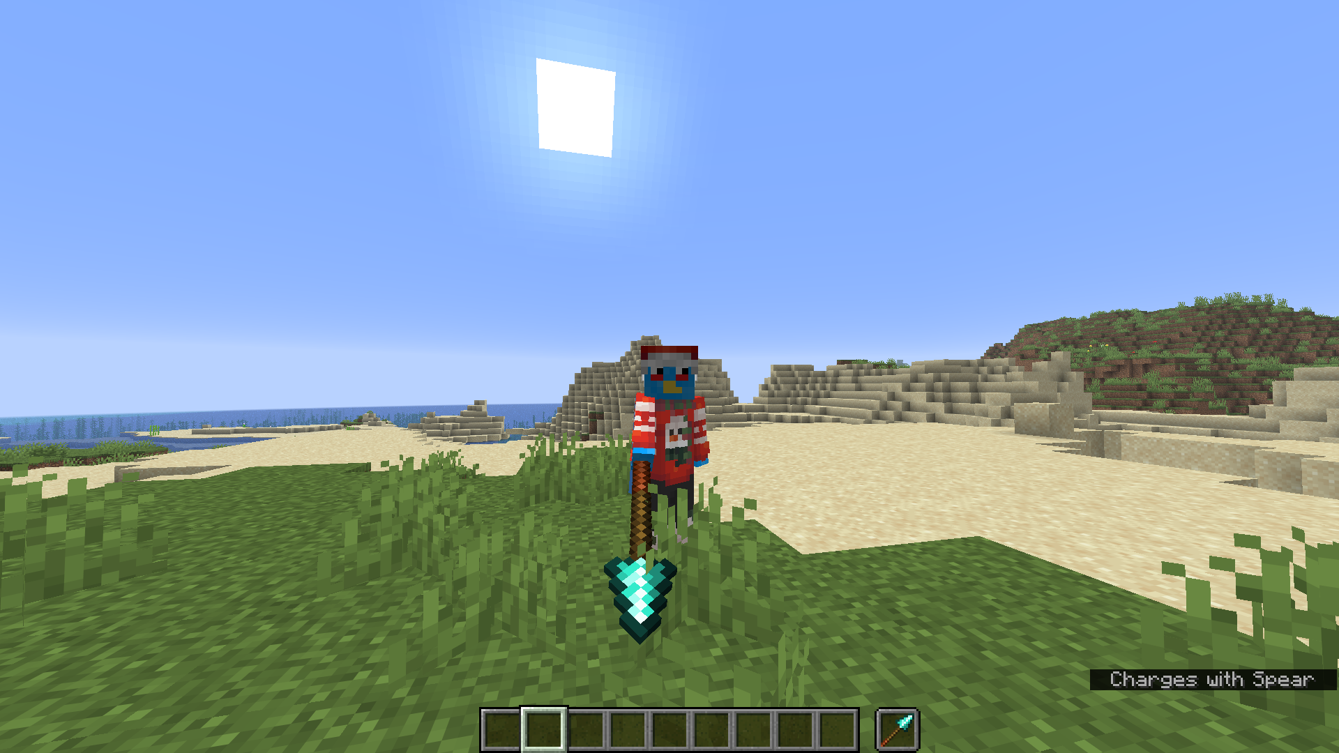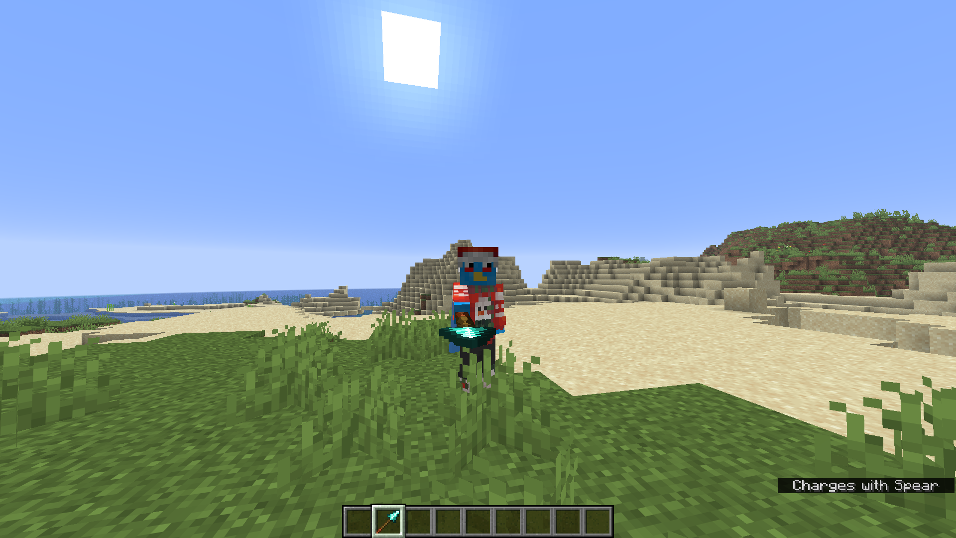 Look in 3rd person with a spear charging