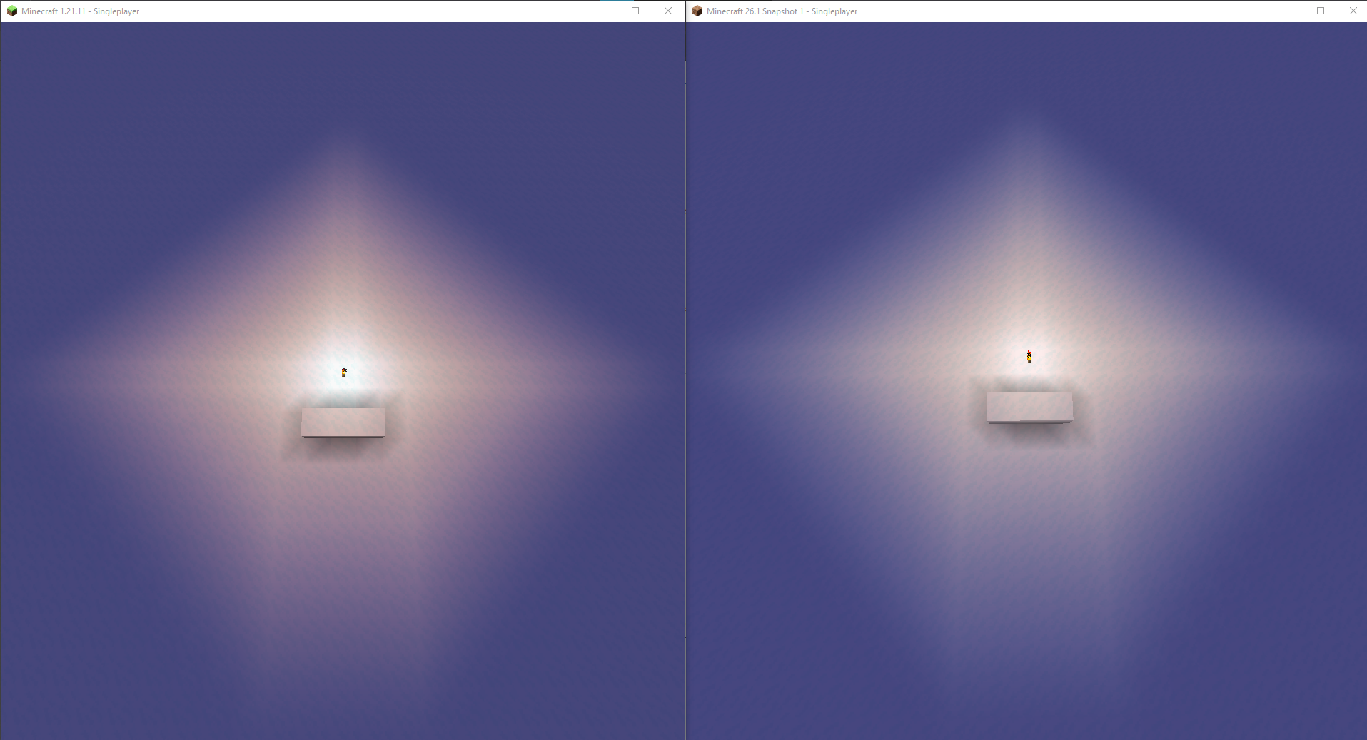 Similar patterns also appear within 1.21.11 (comparison with 26.1 Snapshot 1).