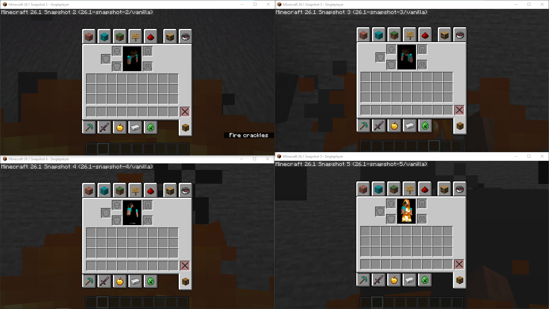 When a player is on fire and checks their inventory, the flames appear black.