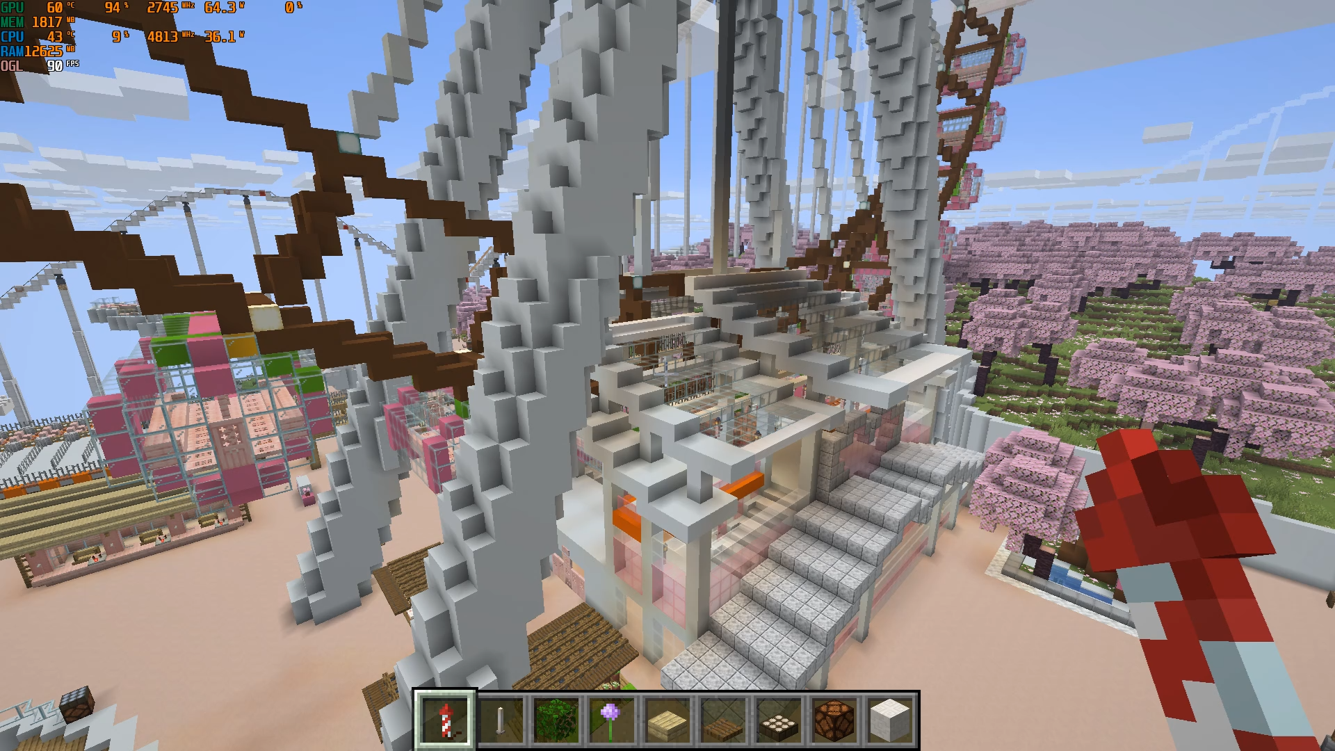 2.Create a world, and build a relatively complex structure in it that consists of a large number of blocks such as glass, trapdoors and fences—for example, a ferris wheel or a carousel.