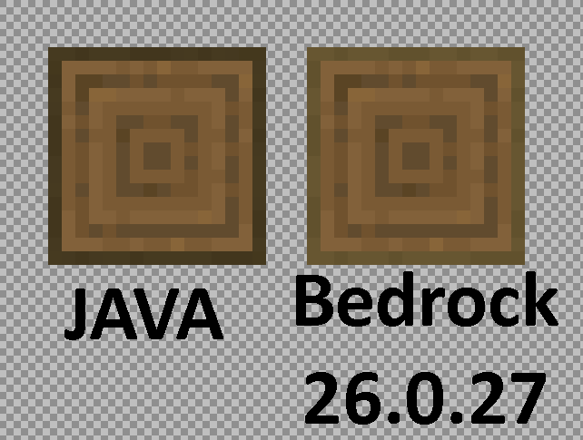In the 26.0.27 preview, Bedrock got a new Stripped Spruce Log Top which Java in 26.1 Snapshot 2 didn’t receive the change.