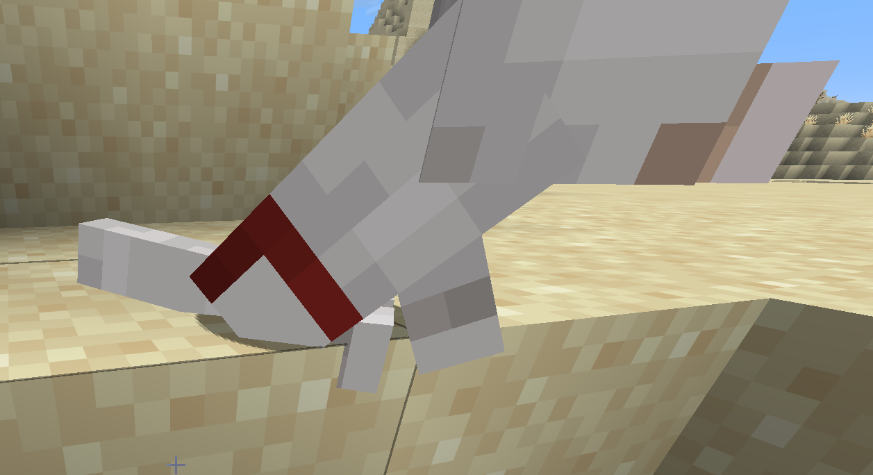The wolf cub's chest is inverted, causing its collar to be poorly positioned. (This only happens when the wolf is sitting down.)