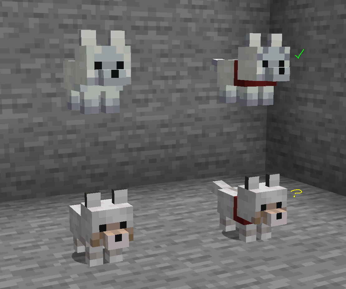 In 26.1 Snapshot 2, most baby wolves will develop eyebrow textures when tamed. The “pale” baby variant does not do this (and in fact, its texture remains completely unchanged).