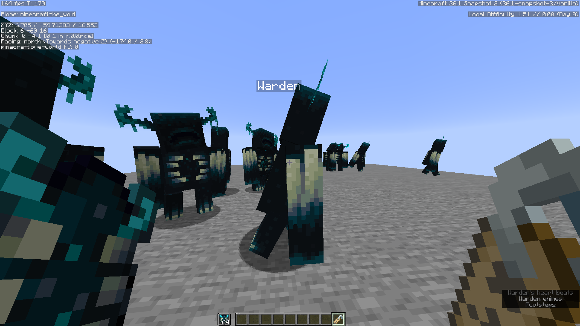 1. Create new world on the previous snapshot and summon Warden with command summon, spawn egg or Sculk Shrieker and named it. Next open world on the newest snapshot and You can notice that Wardens immediately burrows back. Same thing happens while using spawn egg all the time.