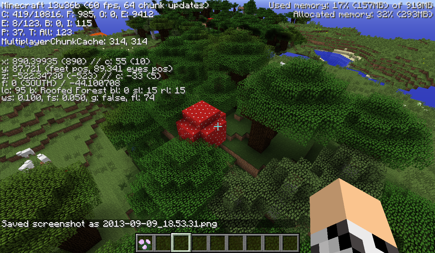 The red mushroom trees appear to be more common then brown. No mushroom biome animals appear.