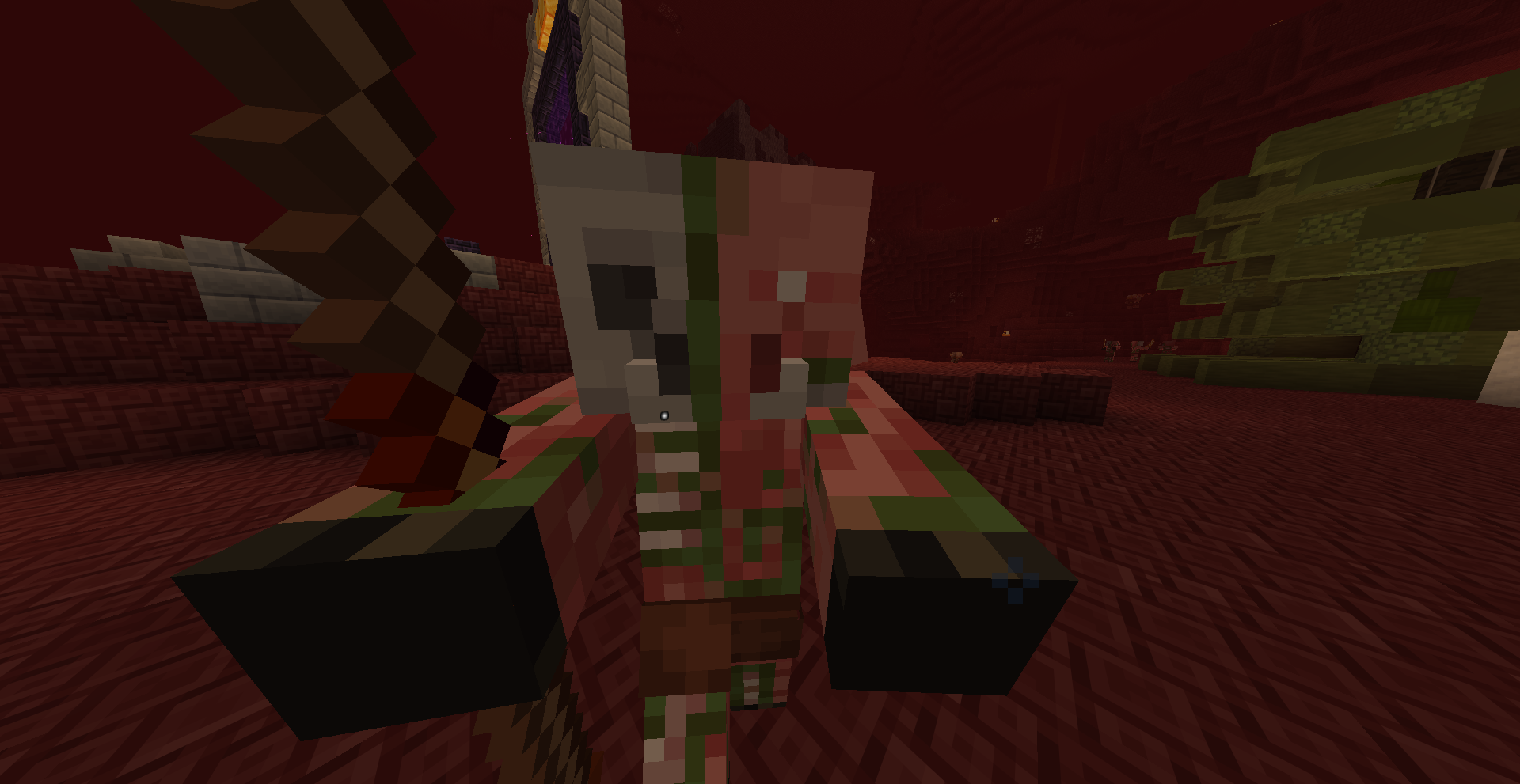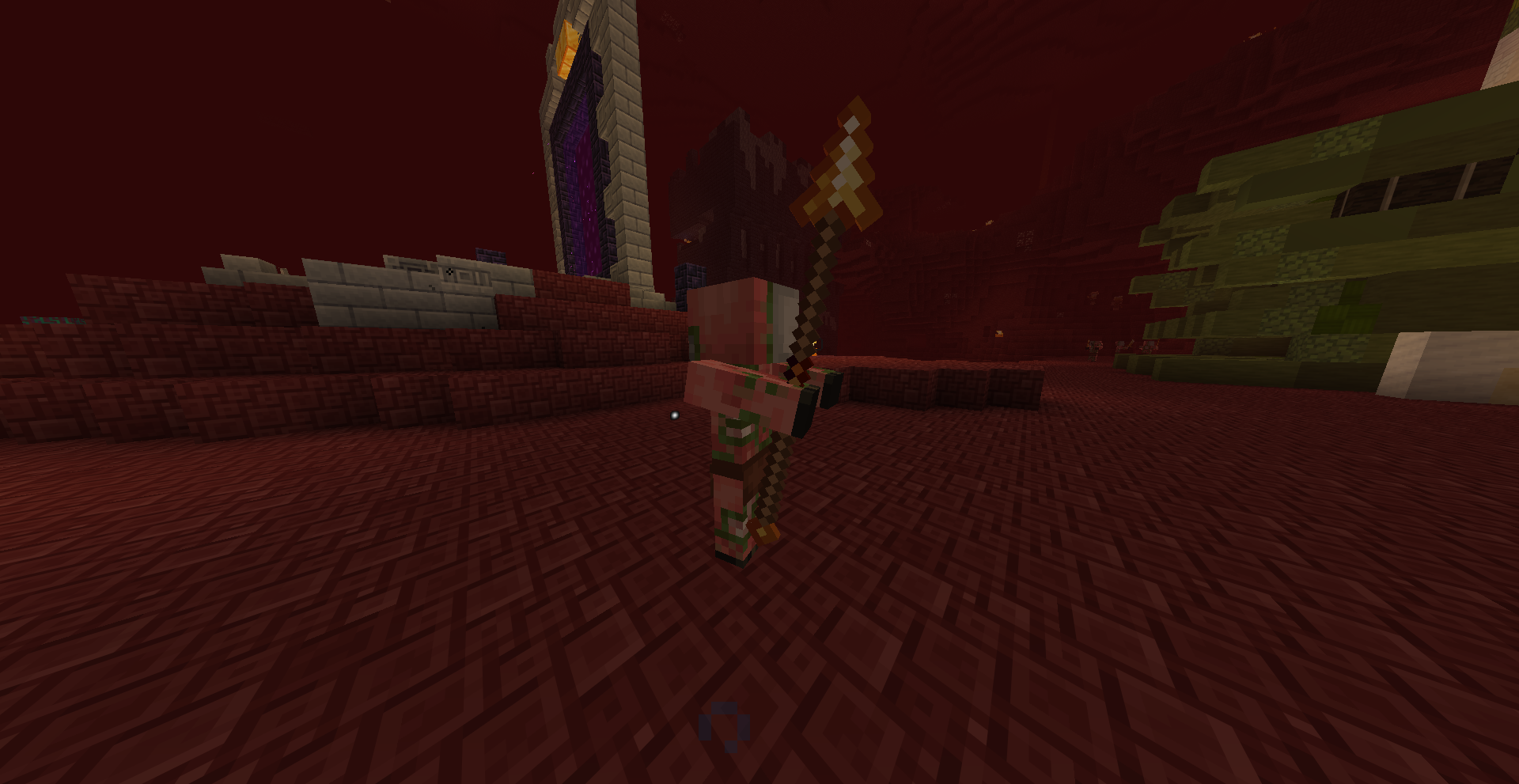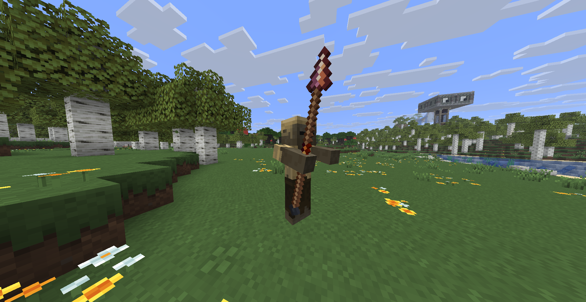 When spawned holding spears normally or riding an undead mount (zombie horse or camel husk), zombies, husks and zombified piglins hold their arms out by default, rather than having one arm down and another arm using the spear.