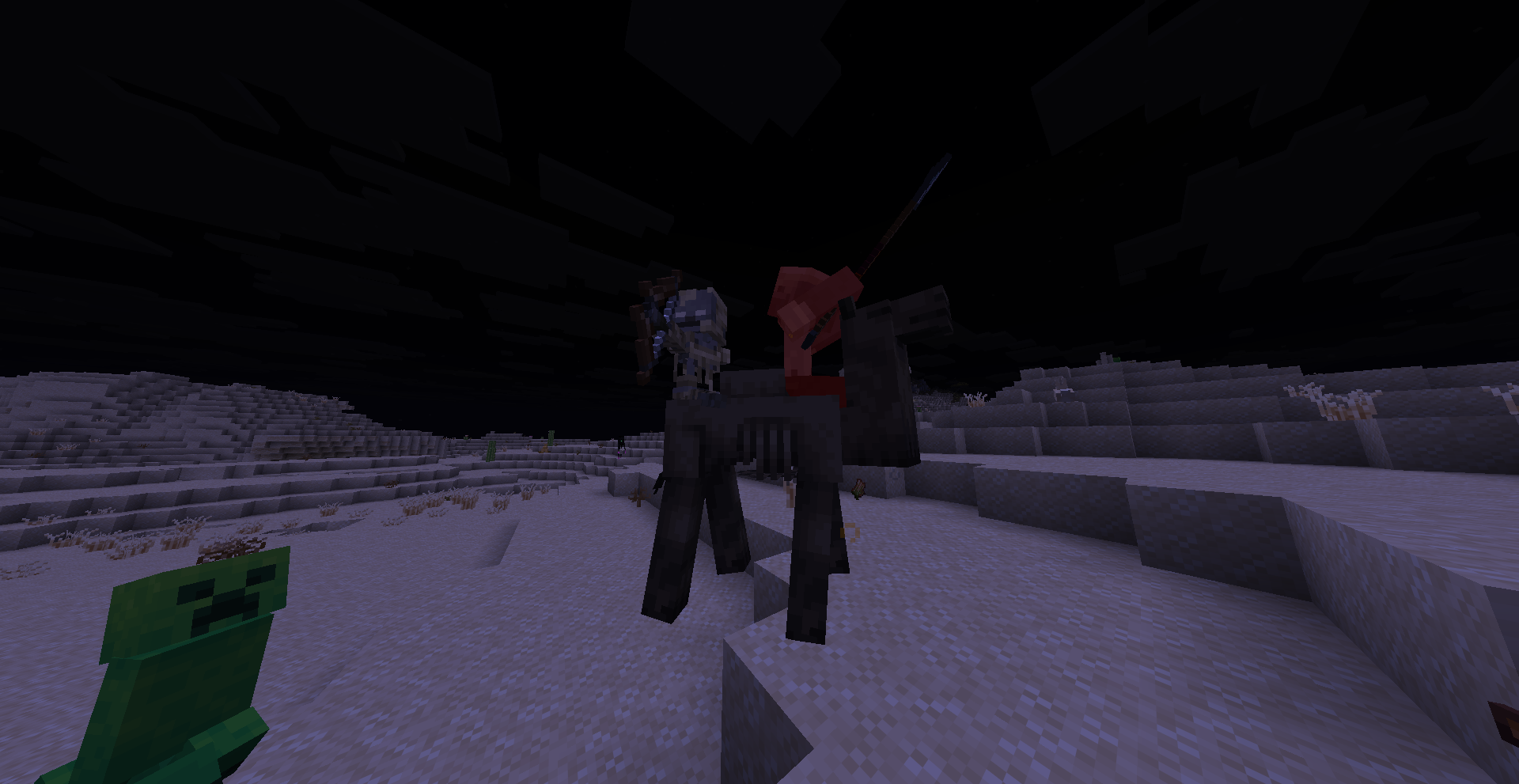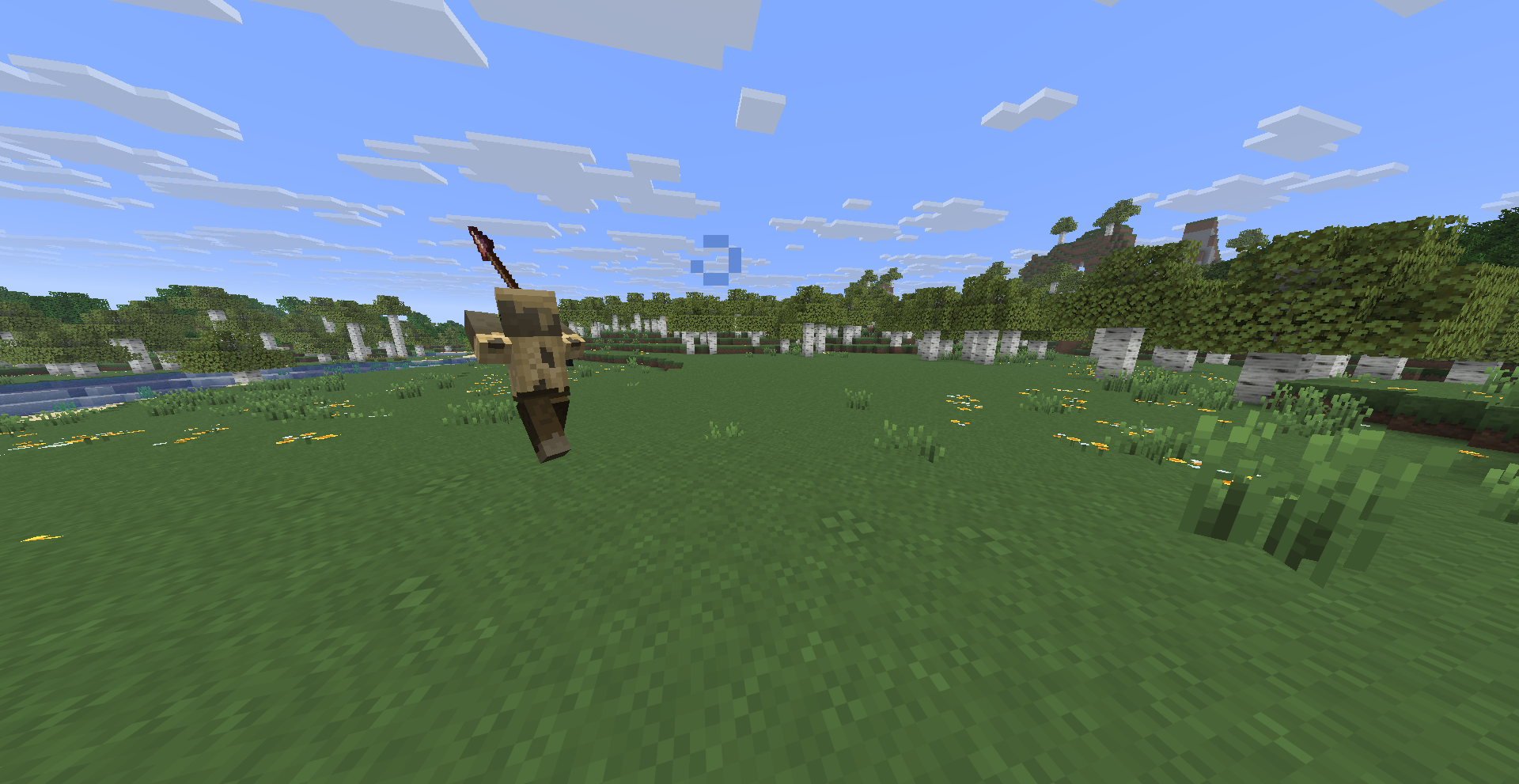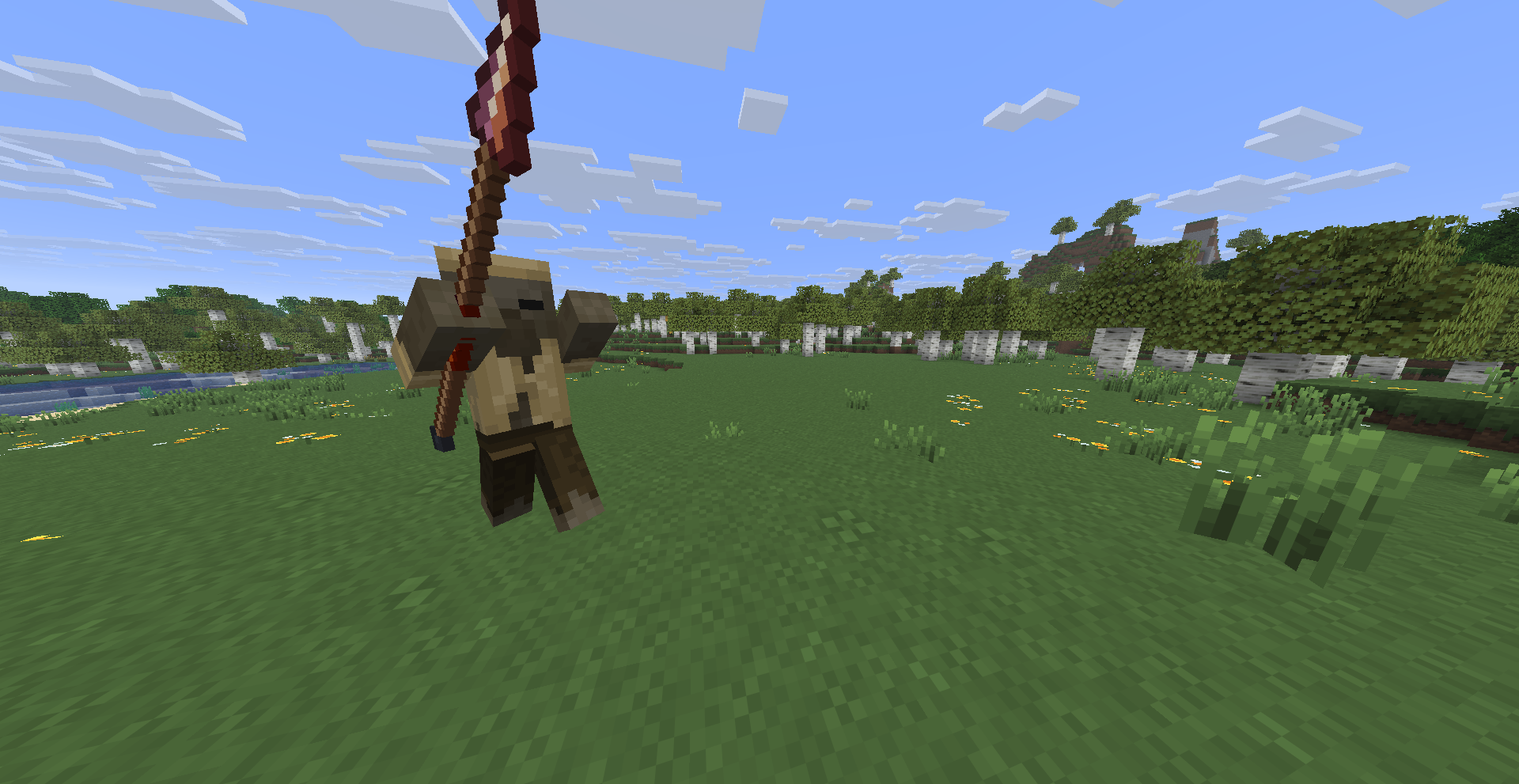 When spawned holding spears normally or riding an undead mount (zombie horse or camel husk), zombies, husks and zombified piglins hold their arms out by default, rather than having one arm down and another arm using the spear.