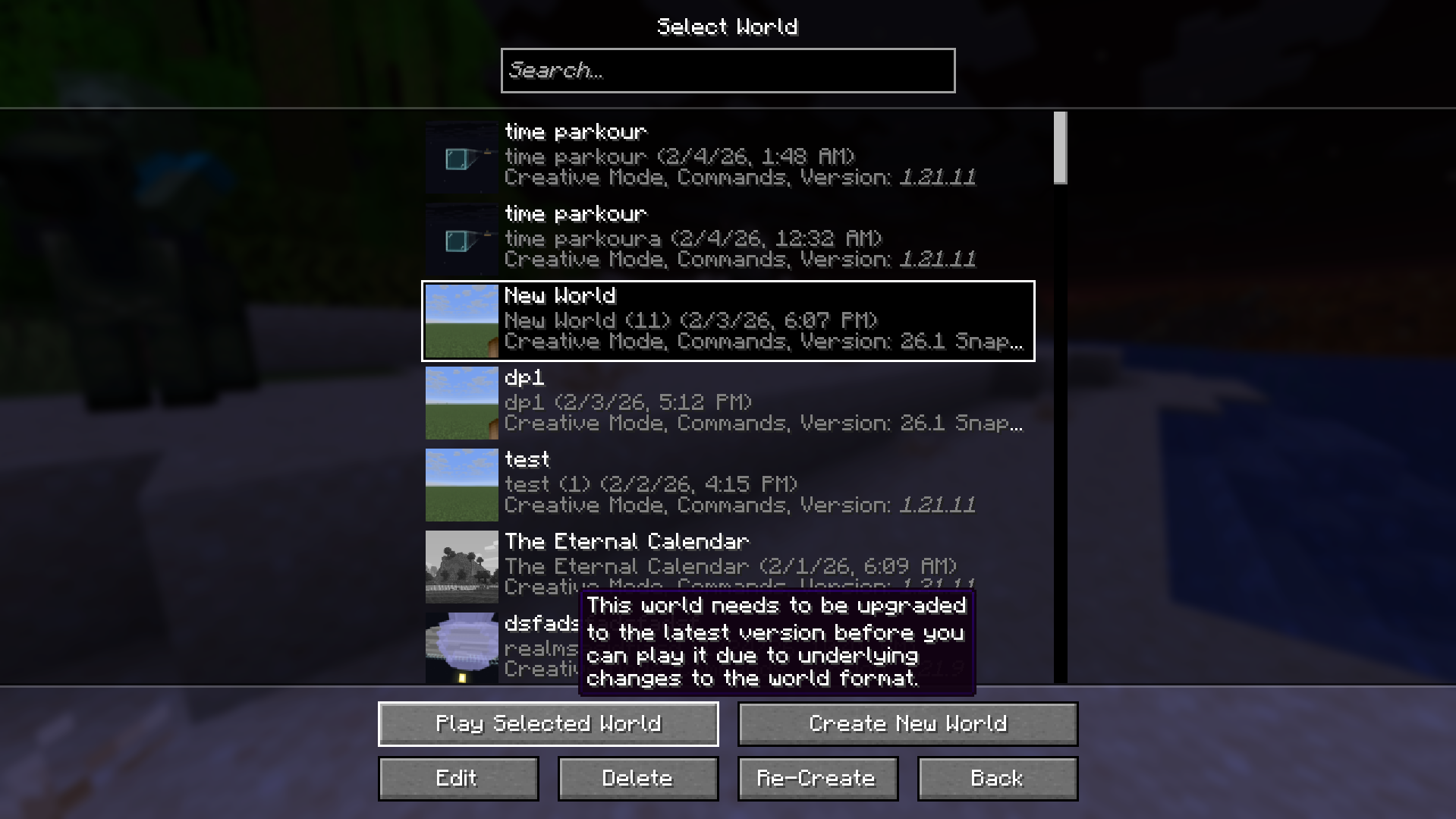 Select the world made in older version and see that world upgrade tooltips appear as expected