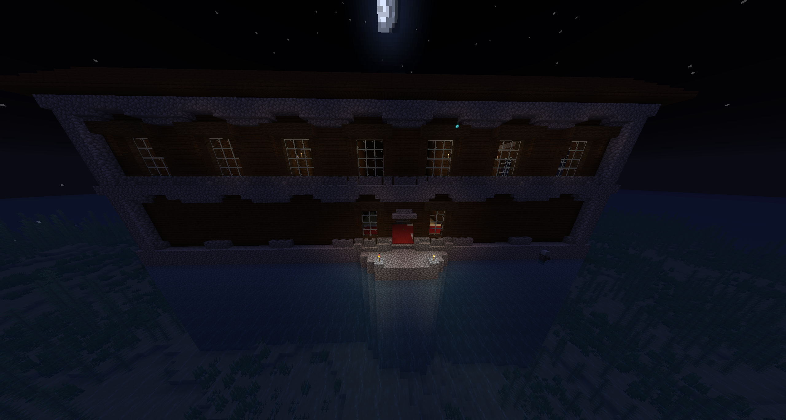 Woodland mansions spawned in a ocean with tall sea grass spawning in the cobblestone base of the mansion