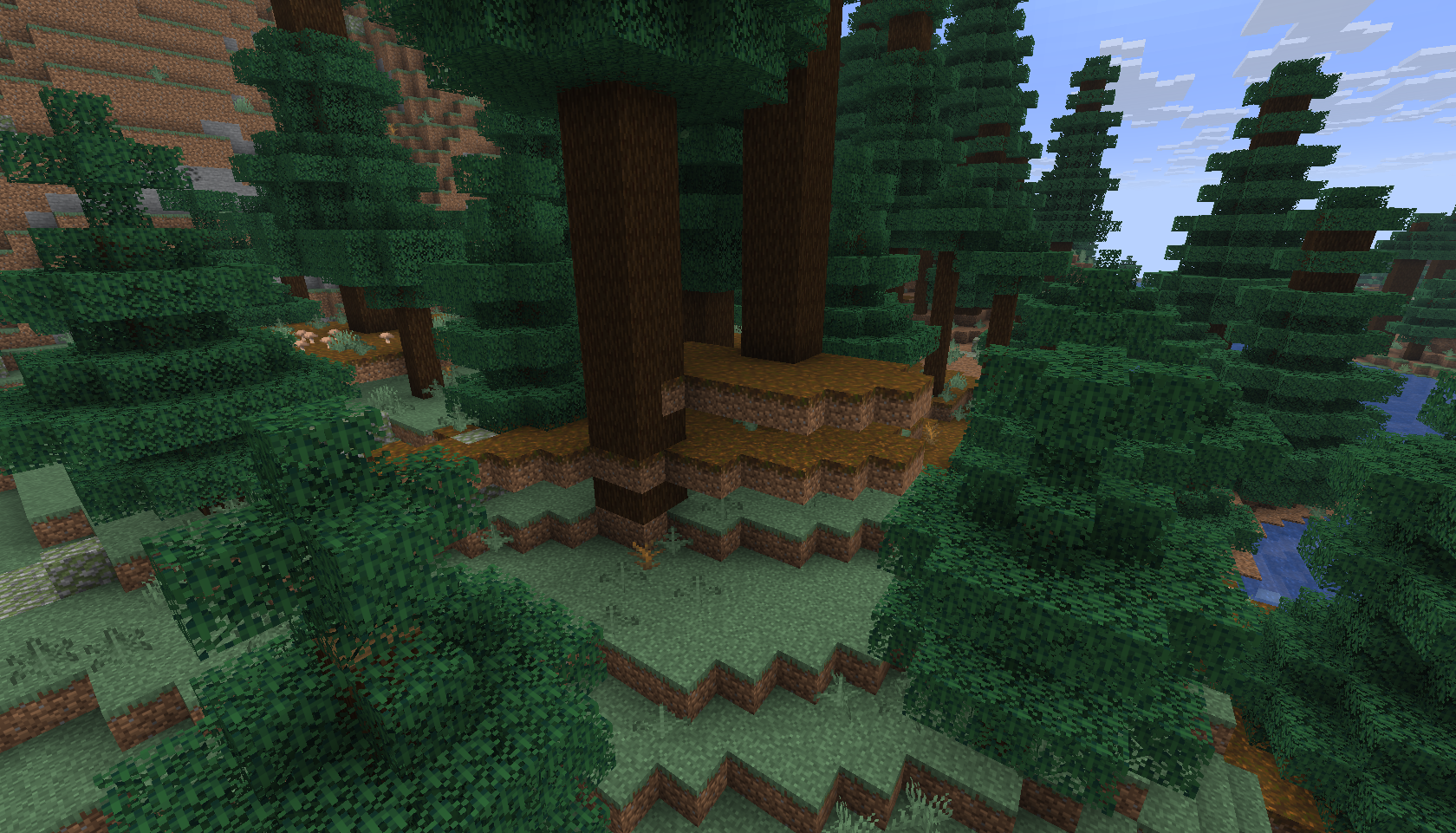You can replicate this by going to the old_growth_spruce_taiga or old_growth_pine_taiga biomes and seeing floating podzol, or by planting a 2x2 spruce tree
