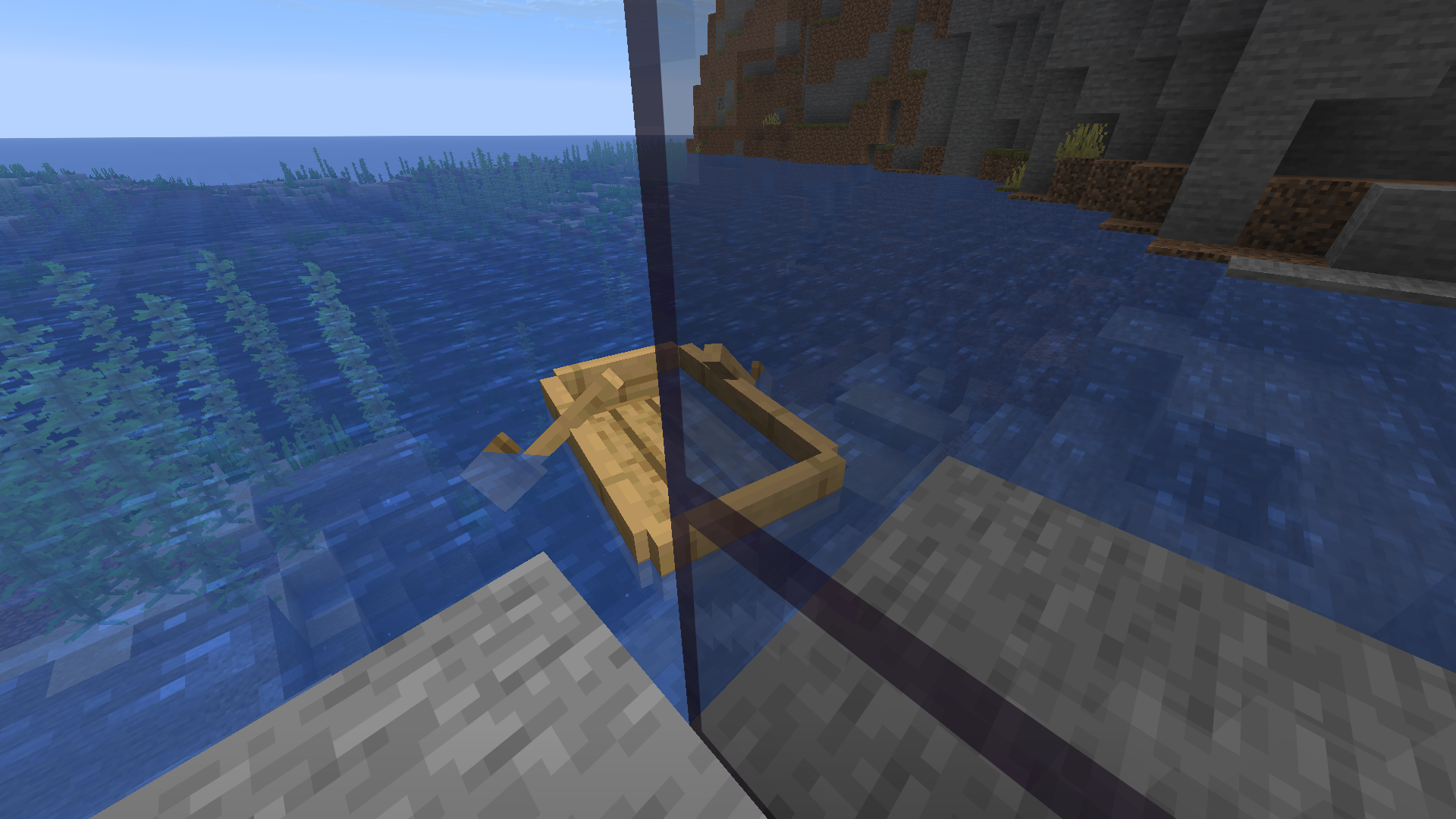 Boats are filled with water through translucent blocks with the “Improved Transparency” setting.