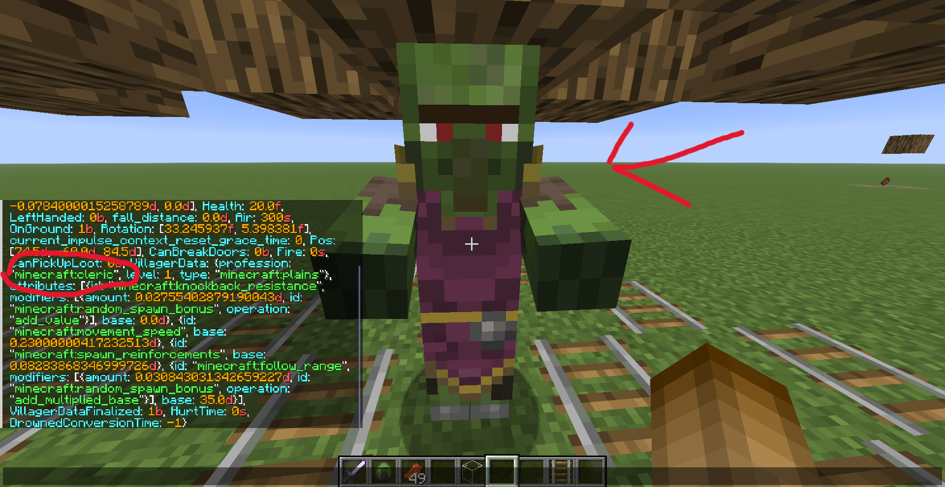 To recreate: Naturally spawn a zombie plains villager, name tag or boat it for despawn protection, then log out and relog in front of the zombie.