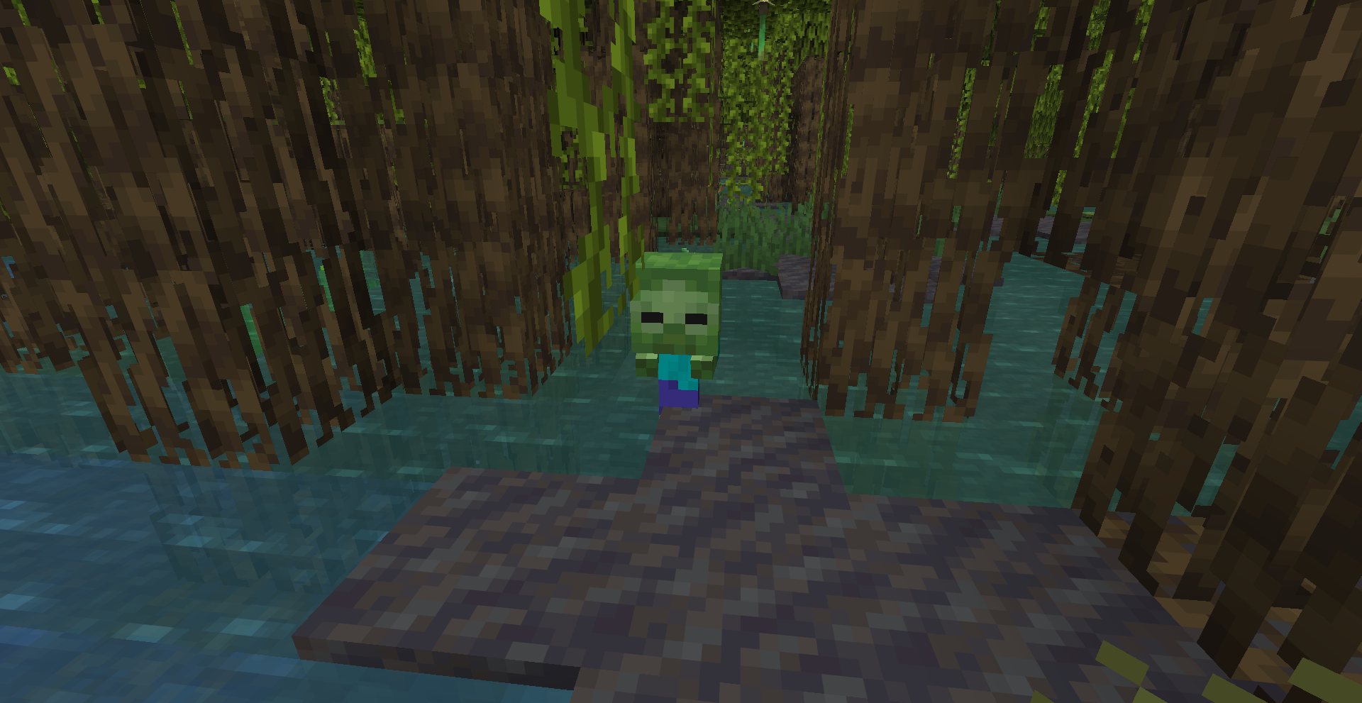 The heads of baby zombies, husks, drowned, piglins, zombified piglins, and zombie villagers are too large, causing their limbs to clip into their heads.