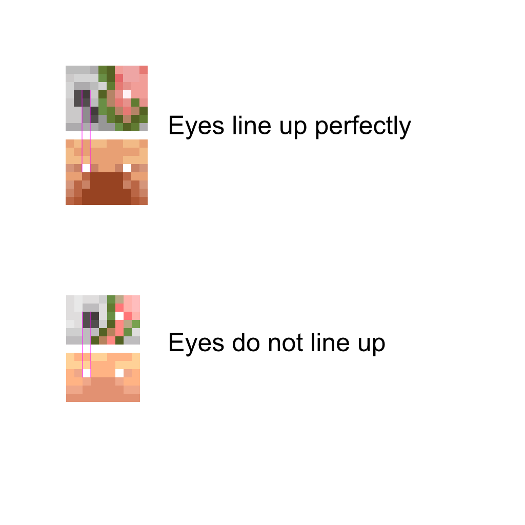 Solution: Shift the right eye (from the zombified piglin’s perspective) to the right by 1 pixel.