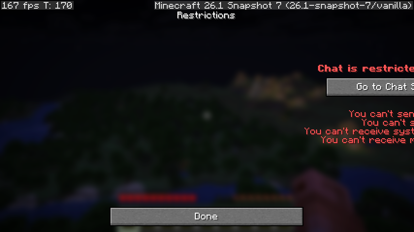 Reducing the window’s resolution while the chat restrictions screen is open causes its text to get misaligned, to the point of extending past the edge of the window if the resolution is lowered enough.