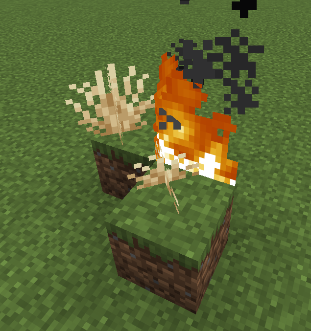When a block has Fire over it, then we break the block, the fire goes on the side of the Grass/Tall Grass/Dry Grass/Tall Dry Grass, Vines, Fences arround (I also tried with Twisting Vines and Walls and the fire don’t go on these blocks side)
