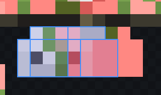 The zombified piglin's snout has a 10×4 pixel texture which is clearly designed for a 4×3×1 model. However, the actual snout model is a 3×3×1 cube, which would require an 8×4 pixel texture. As a result, the snout's UV mapping doesn't cover properly the snout texture. In-game, this is particularly noticeable as it causes one of the nostrils to appear on the side of the snout instead of the front.