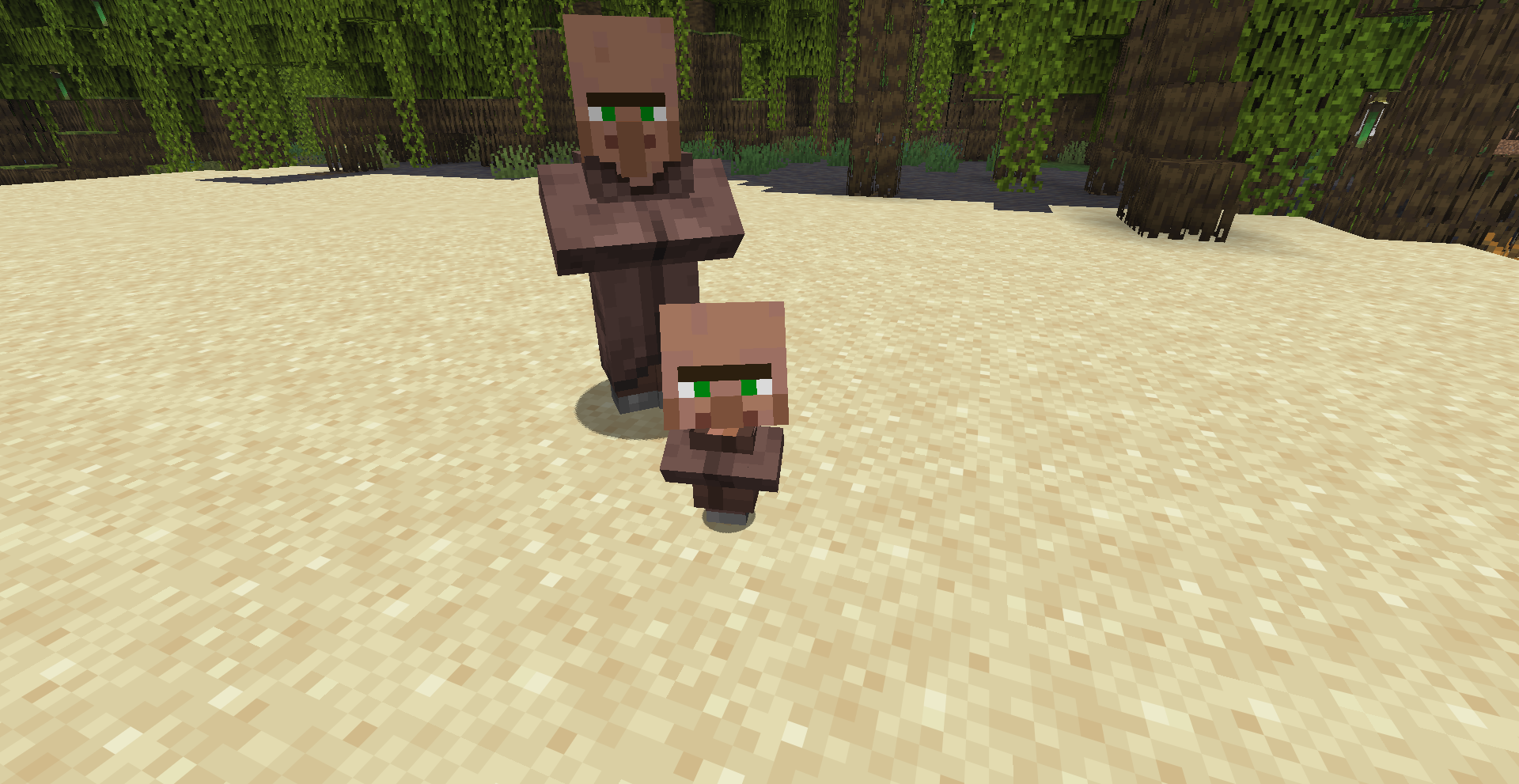Baby villagers have a gigantic head, with its head texture and nose cut off below the mouth.