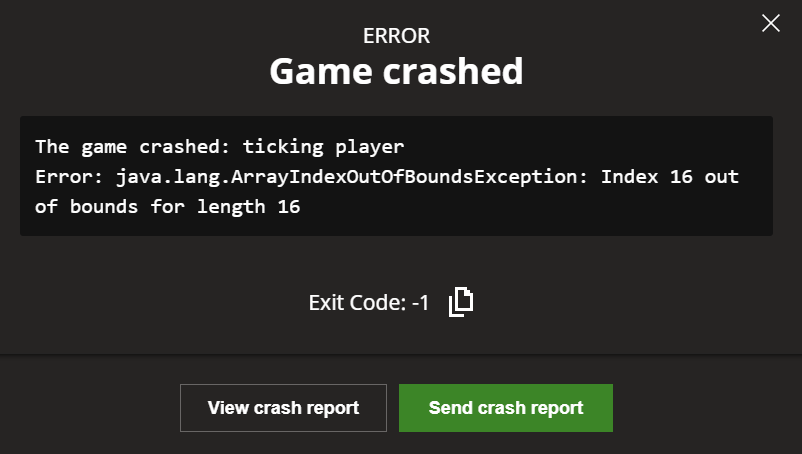 The game crashes when going below the world in any dimension.