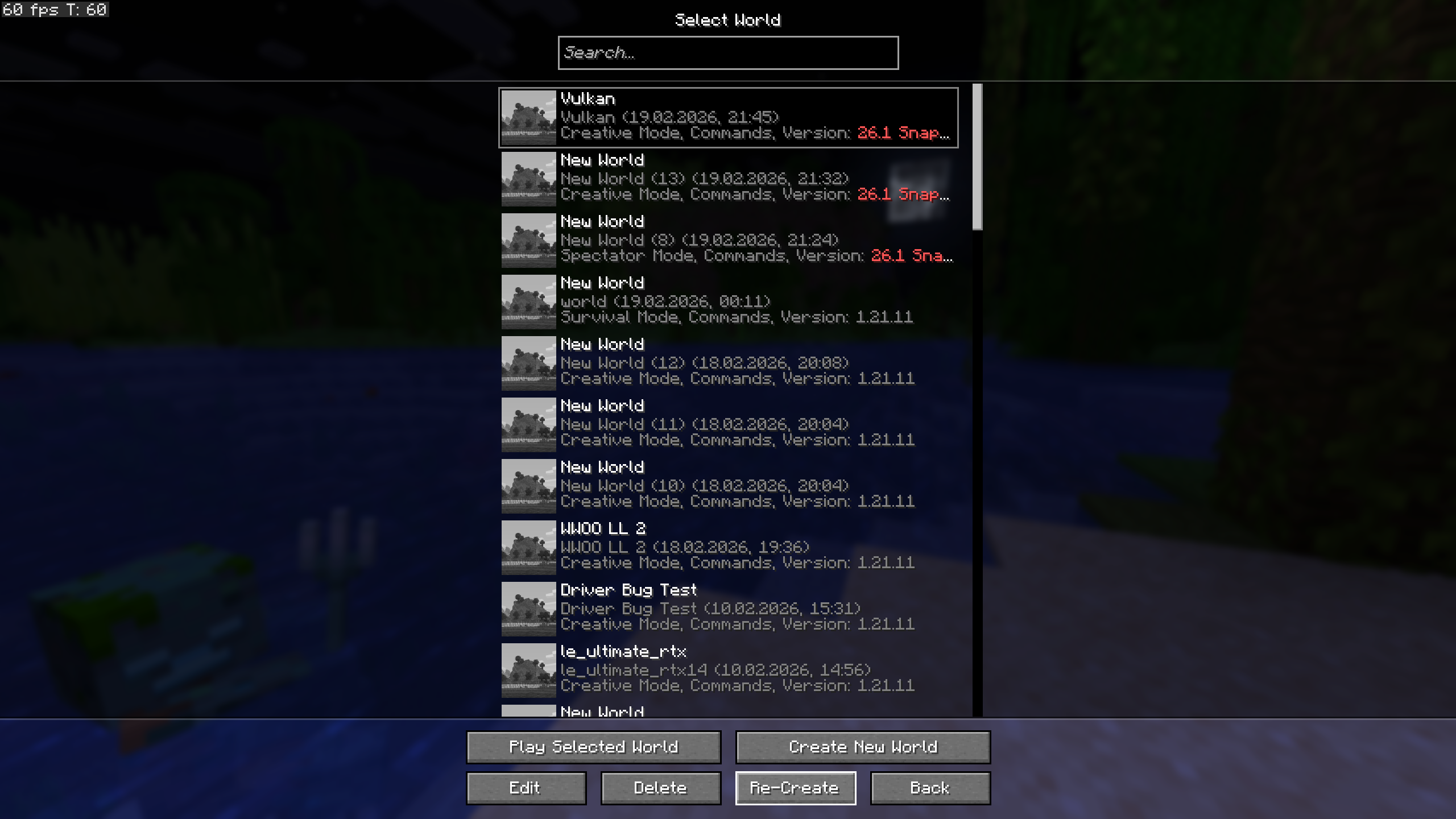 If you encounter an error while trying to recreate a world and go back to the world list, all worlds temporarily lose their world icon and use the default one instead. Once the world list is reopened, the custom world icons are shown again.