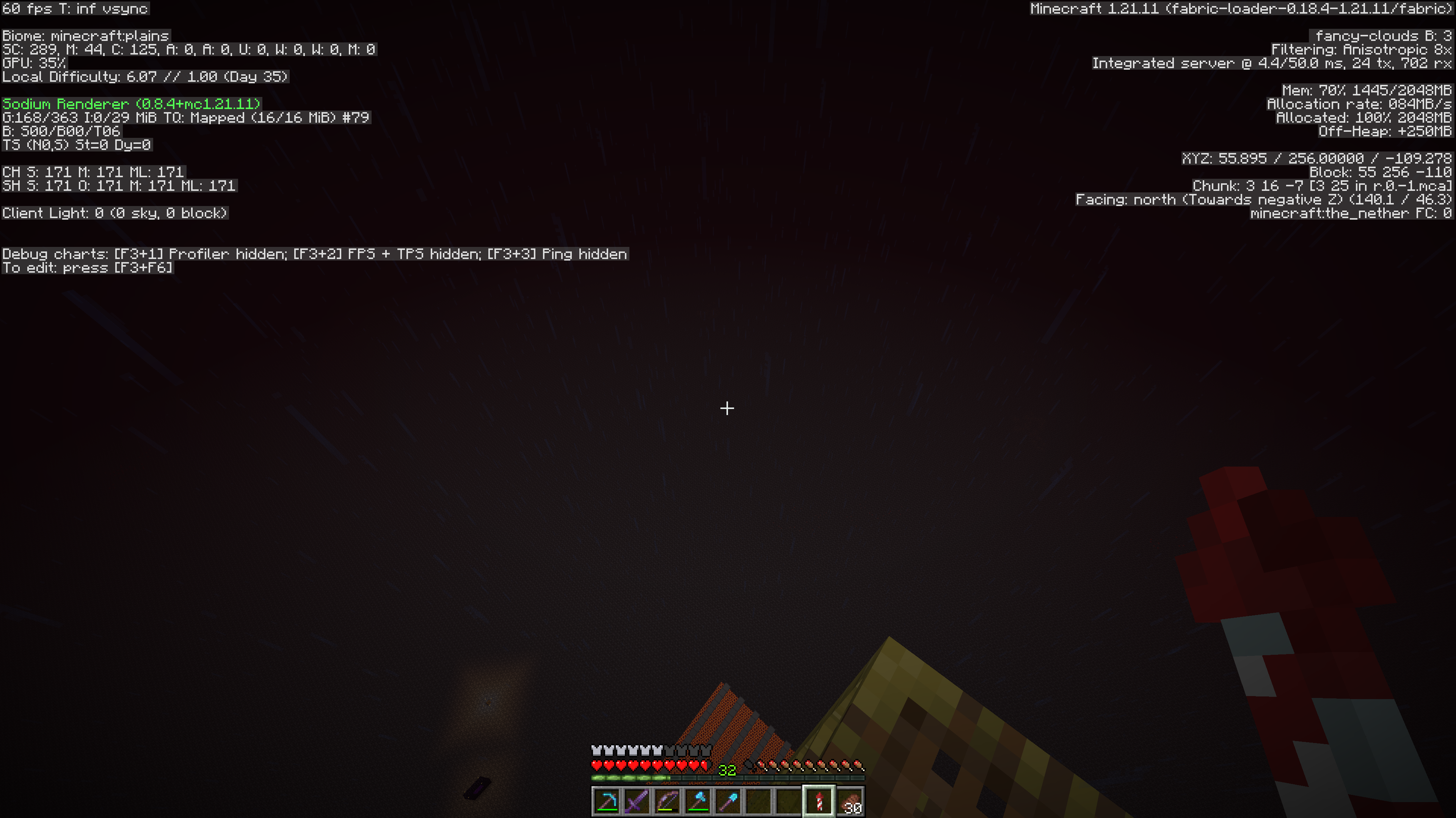 A world which had previously been opened with a modified client might be corrupted. Please try reproducing the issue in a newly generated world.