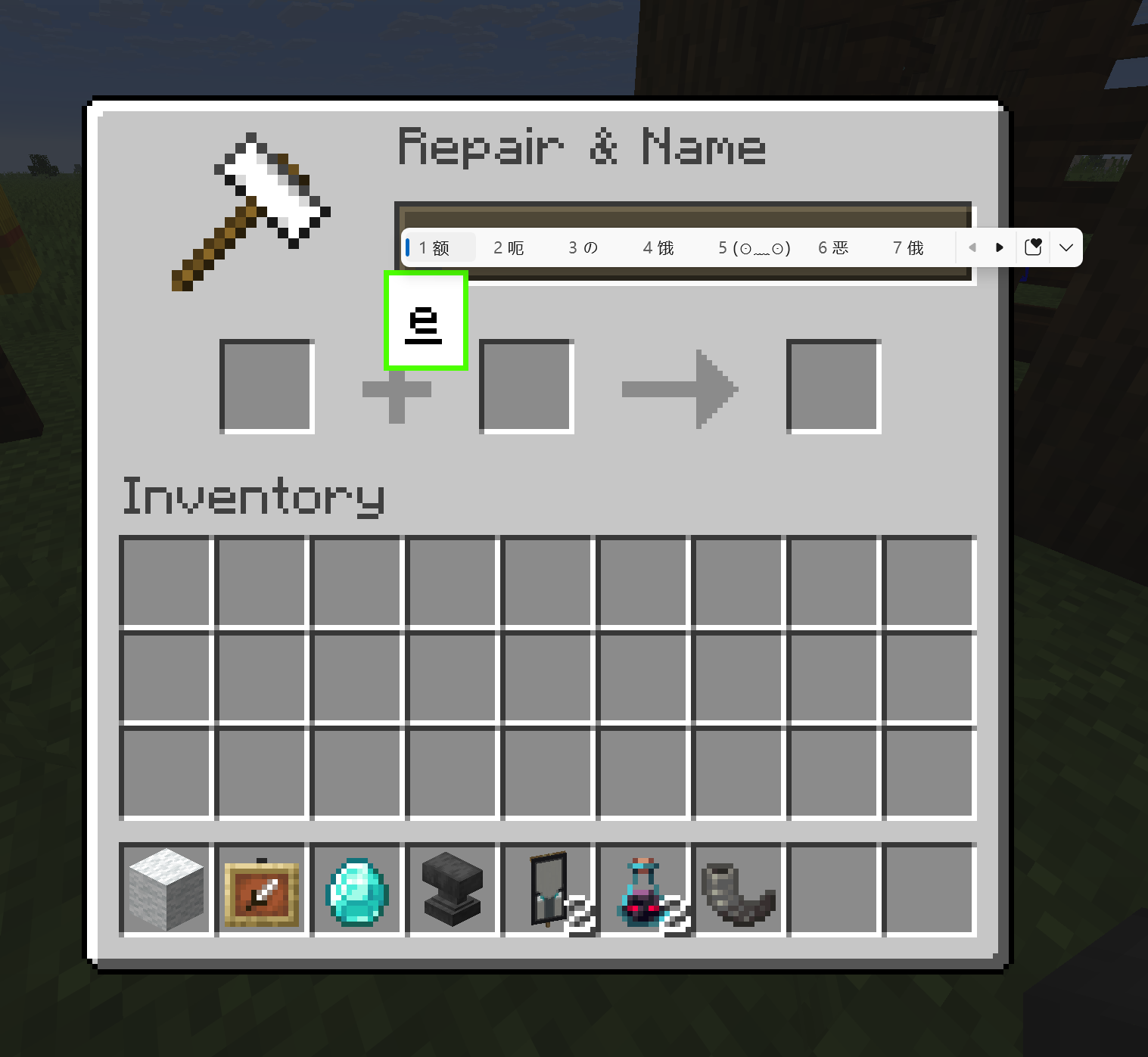 When IME is enabled in Anvil and no items are in slots, the IME is displayed in unfocused EditBoxes and keybindings do not work.
