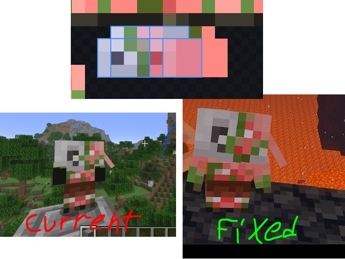 Currently, there is an issue with Baby Zombie Piglins where the UV map on their about is askew, causing a part of their nose to be on the side of their face.