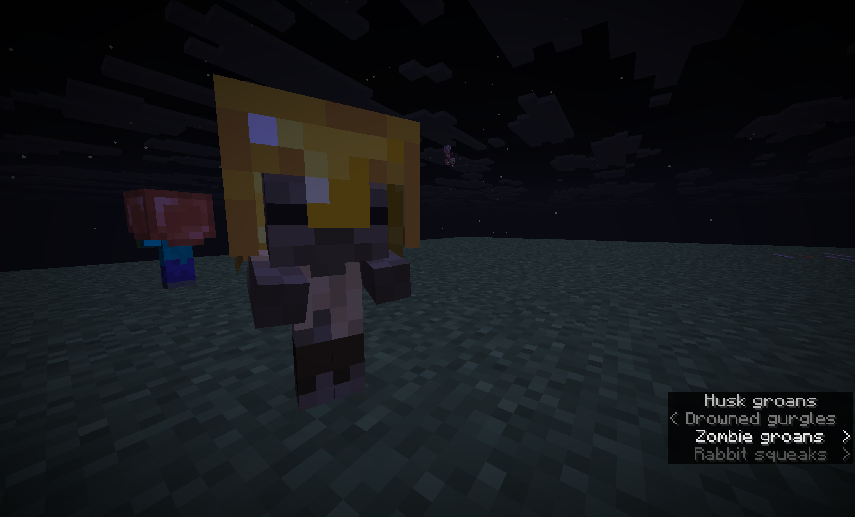 The helmets used for the gurgle and baby zombie/husk still use the baby humanoid armor model from the previous snapshot despite their heads being remodeled to be smaller, making the armor appear to float. More prevalent on baby zombies and husks than gurgles due to the gurgle’s outer head layer making their head appear slightly larger