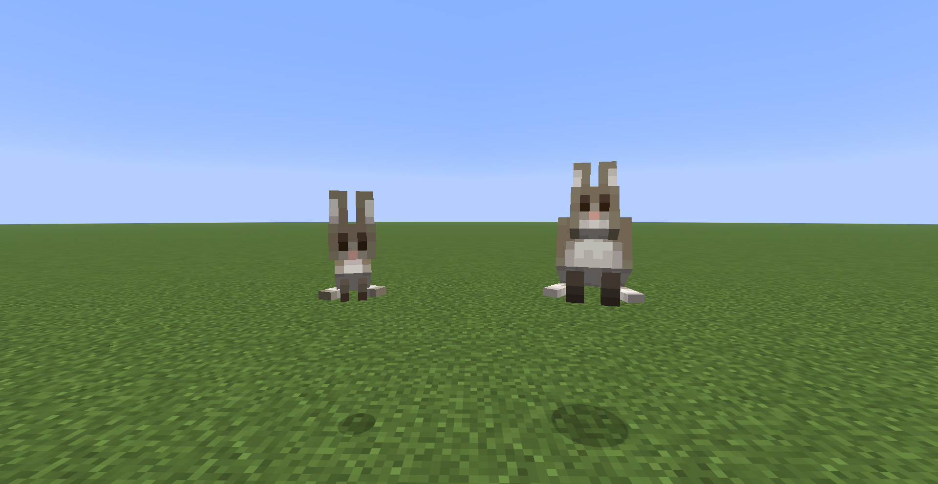 The heads of the Rabbit is rotated upwards compared to the Baby Rabbit and makes the eyes of the model misalign with the line of sight. It is also inconsistent with the Bedrock Edition model of the Rabbit.