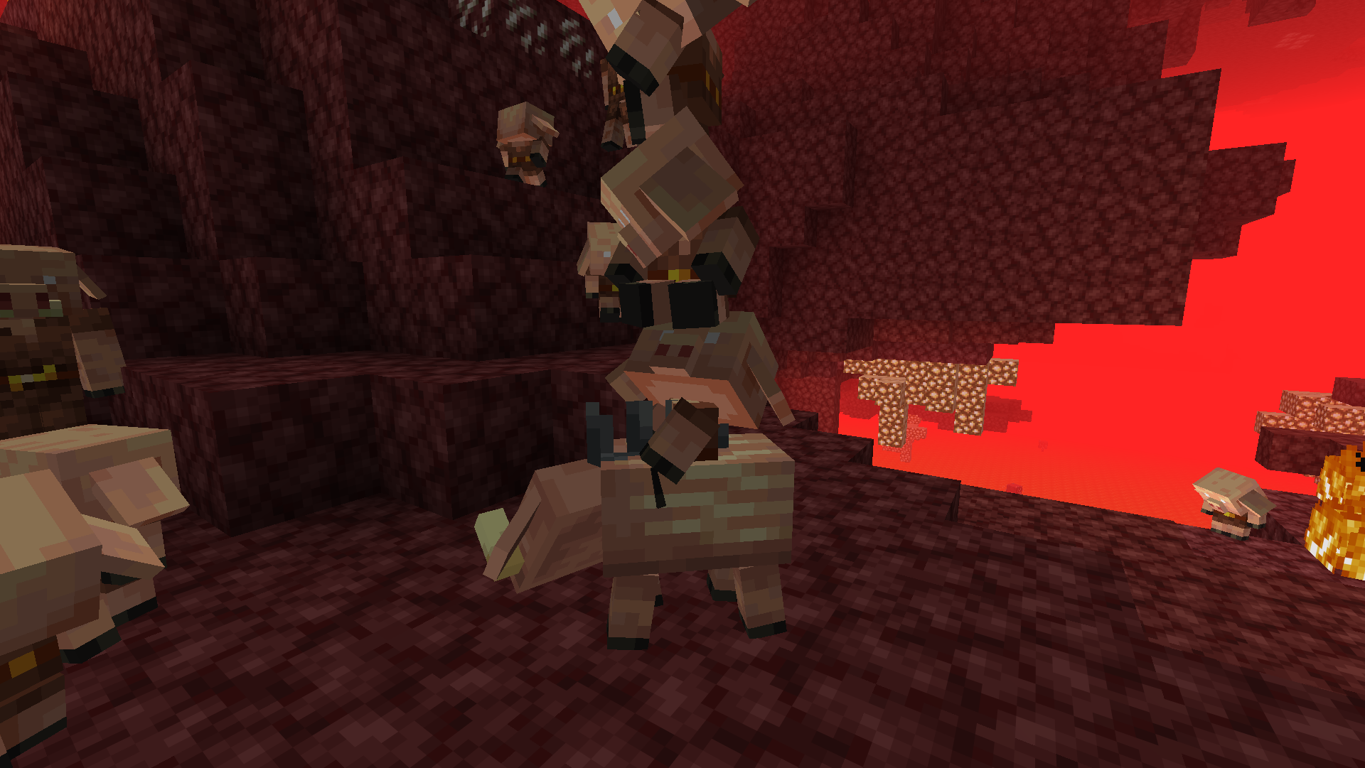 The baby hoglin's torso is now two pixels higher. The position of mobs riding on them hasn't been changed to reflect this, however, causing the riders' legs to visually clip through them.