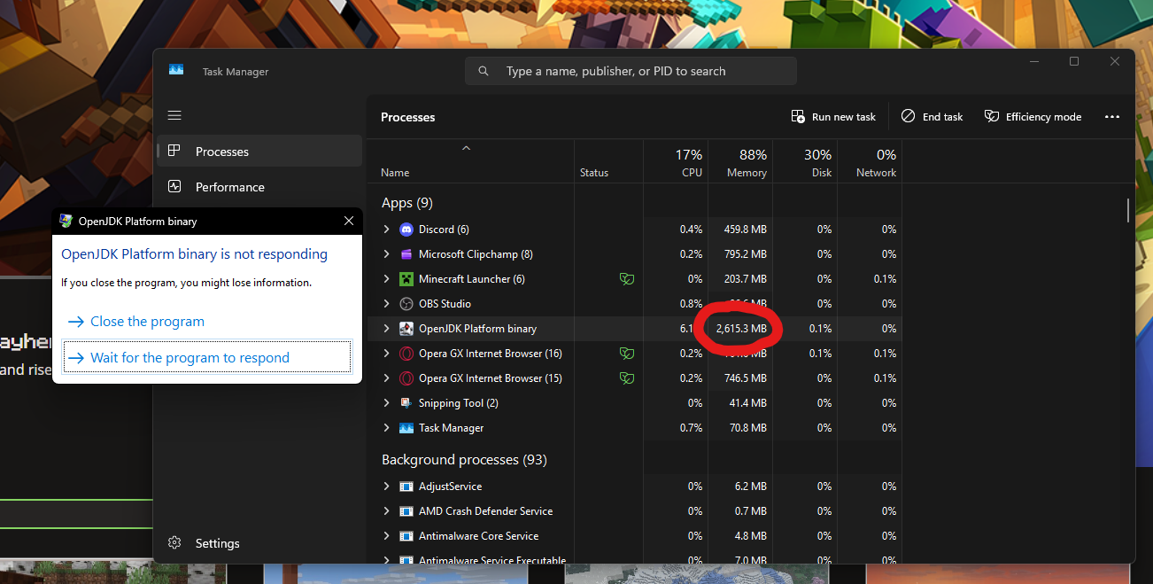Attempt to switch back to Minecraft