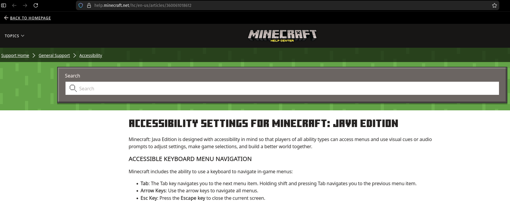 As shown in the 2nd image the Accessibility Setting for Minecraft: Java Edition website states: