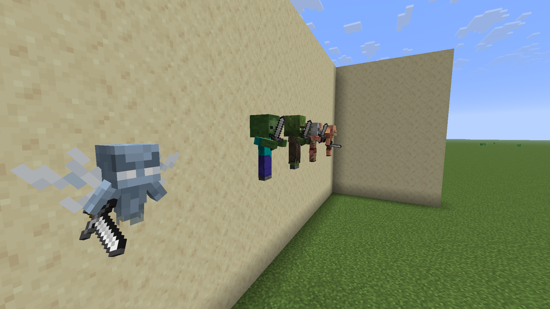 The swords held by the Baby Zombies are scaled down to match the size of the mob and match the size of existing mobs.